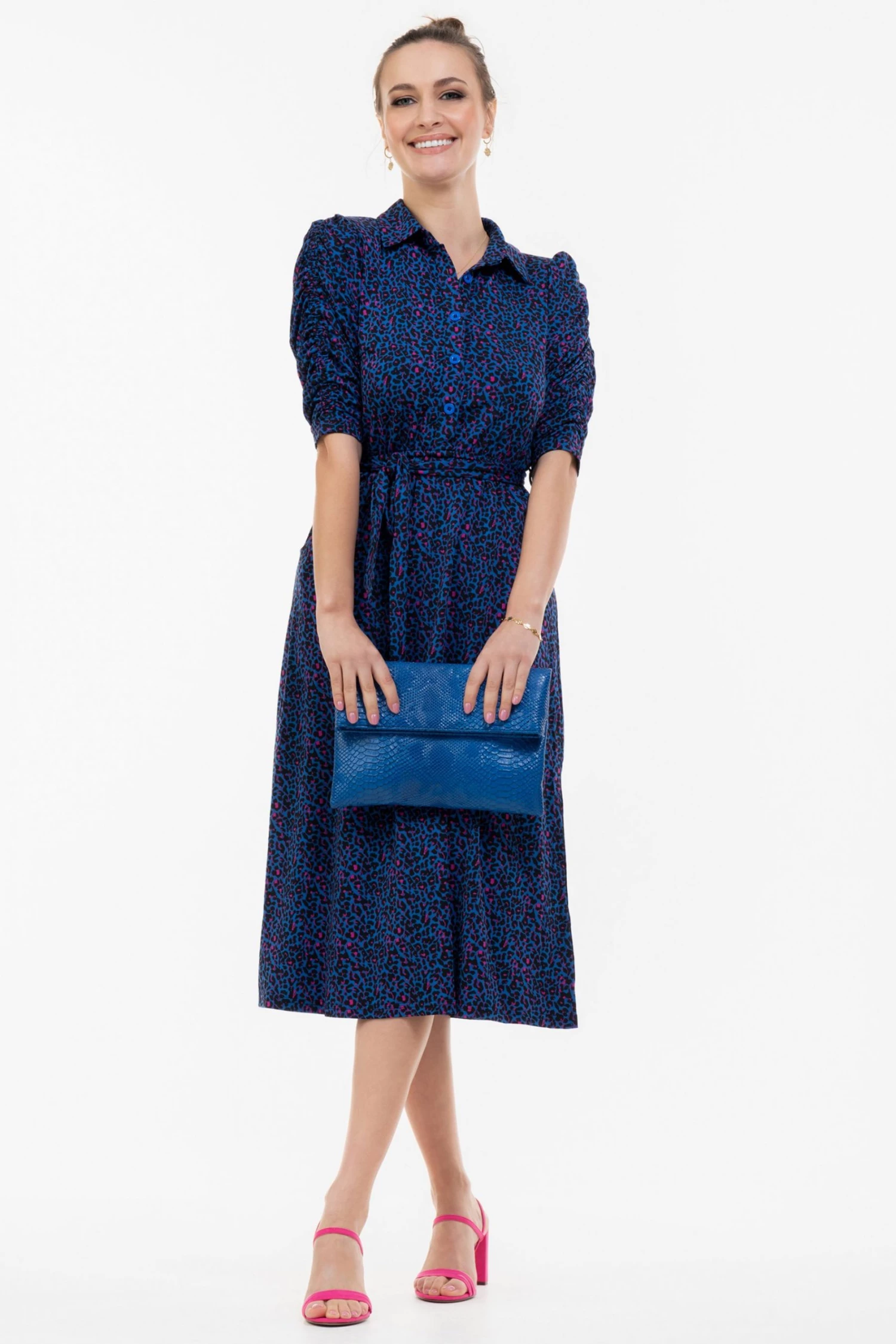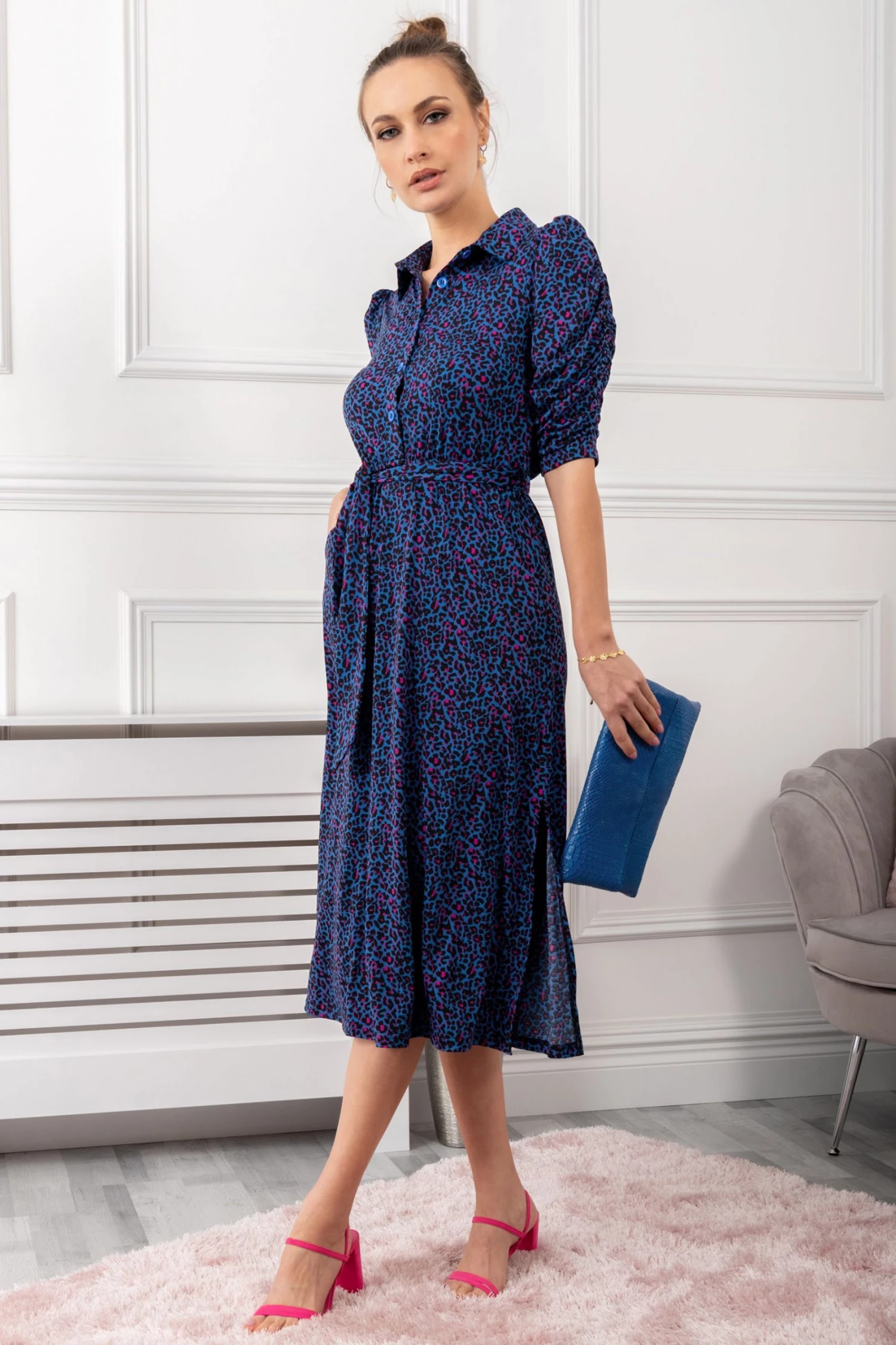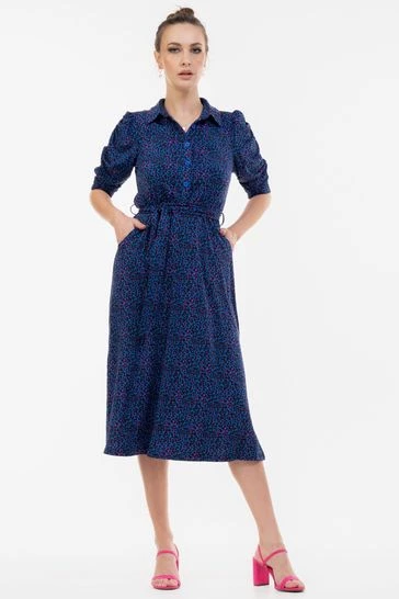 Cut from a premium jersey fabric, this stunning dress from Jolie Moi is a smart addition to your new season wardrobe. This statement piece is framed by a smart shirt collar, button fastening front and flattering ruched elbow-length sleeves. Completed with two side pockets and a self-tie belt which adds waist definition.