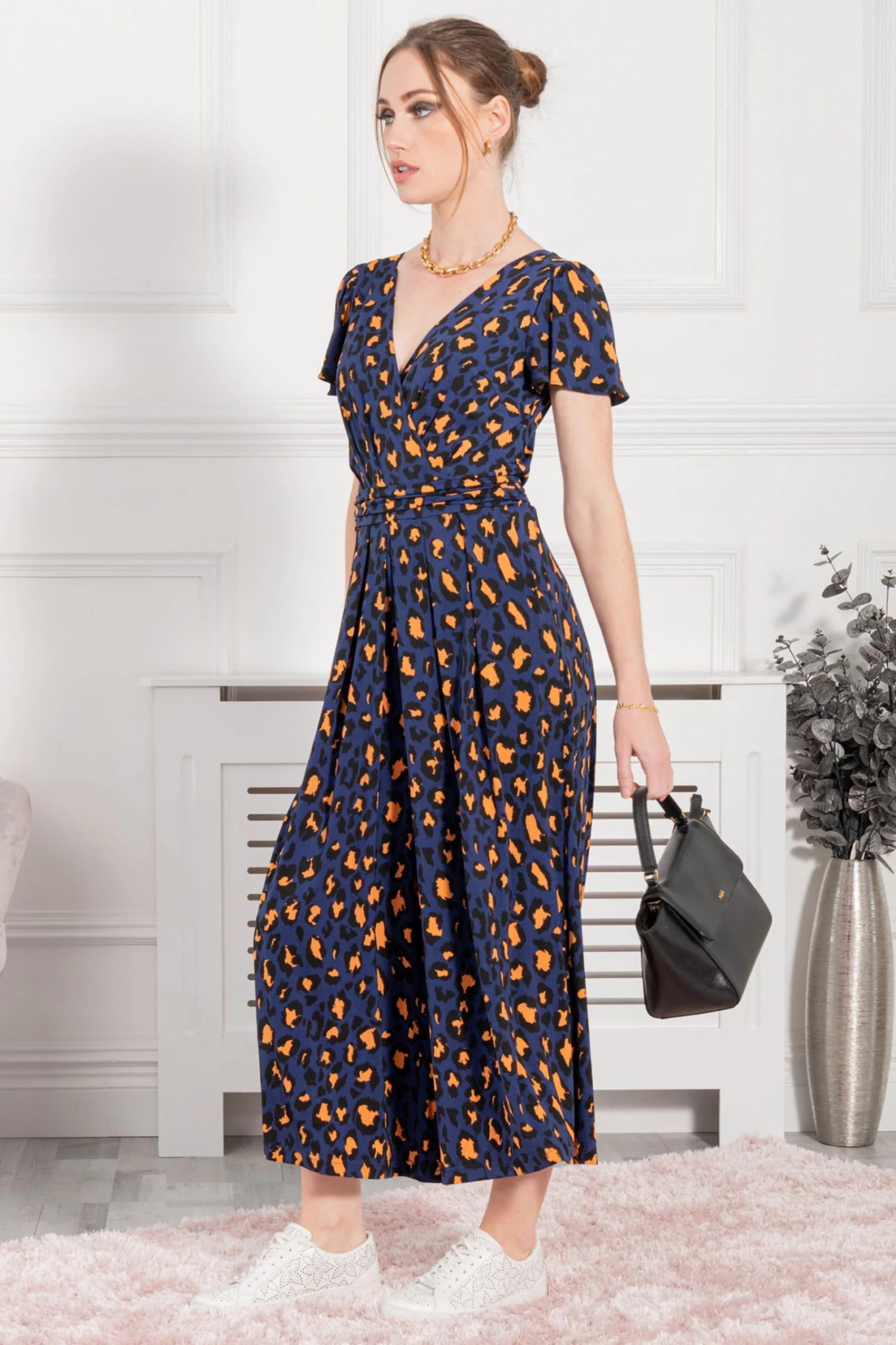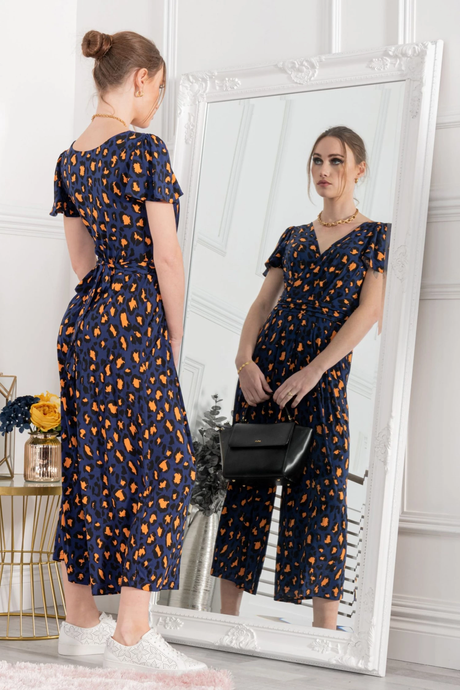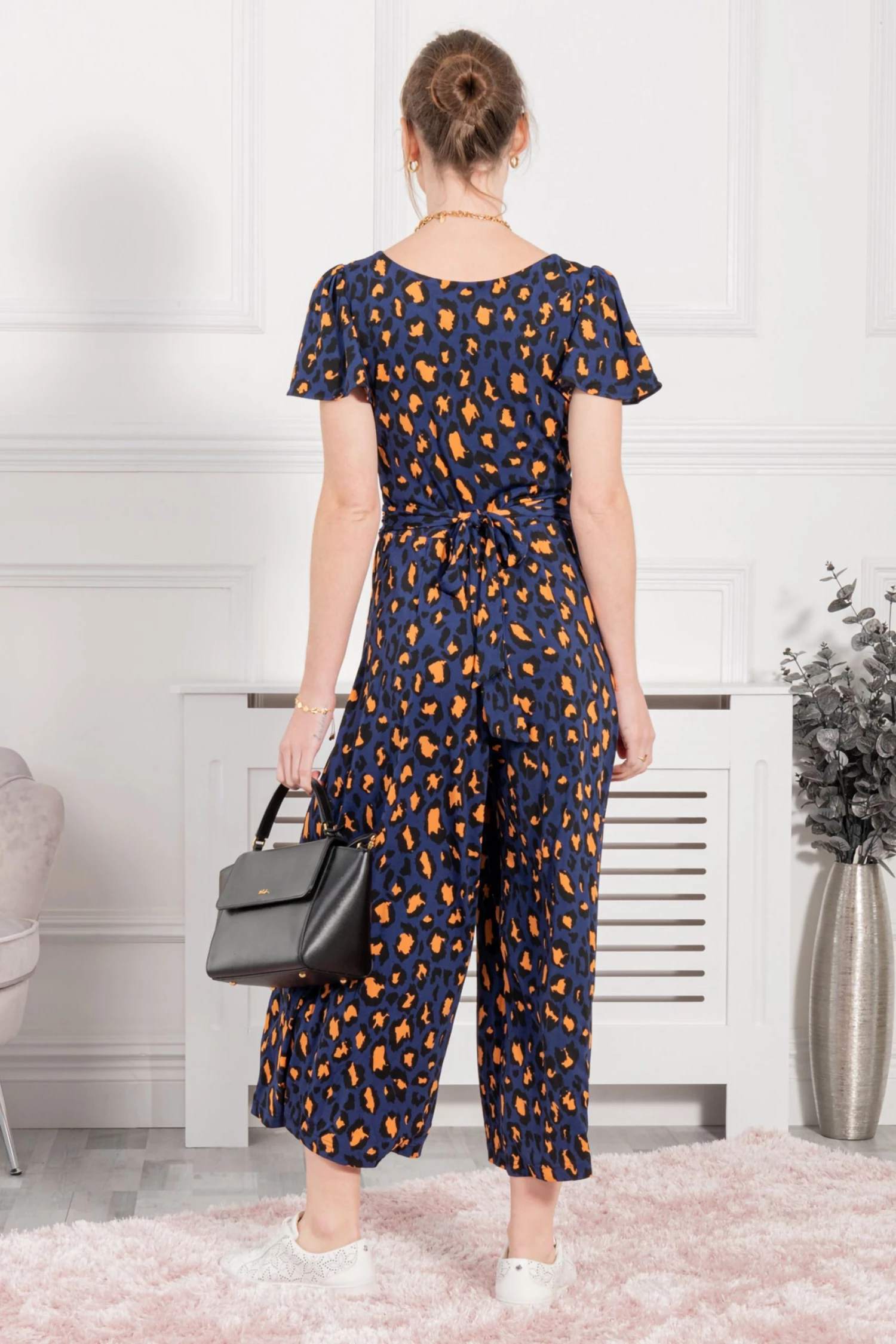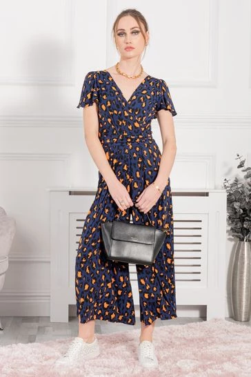 Jump start your new season wardrobe with this chic and versatile jumpsuit from Jolie Moi. This all-in-one piece is a perfect day-to-night wonder. Striking prints with a classic wrap shape and cut in a cropped silhouette creates the perfect smart/casual balance. This jersey culotte jumpsuit cinches at the waist with a self-tie belt and its V-neck can be easily styled with your favourite pendant. Dress up with block heels or down with white trainers.