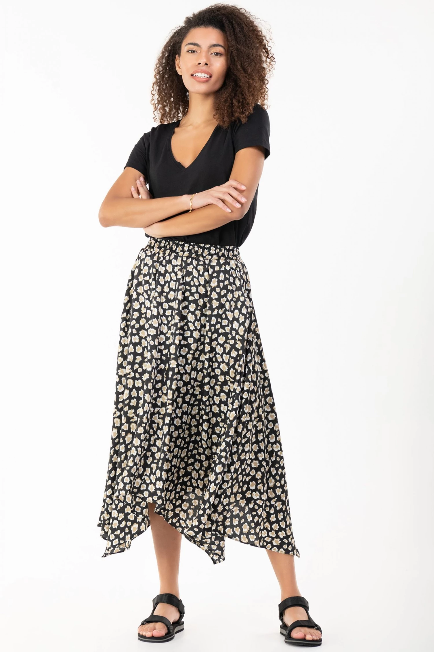 Falling to a flattering A-line shape, this midi skirt by Jolie Moi is made from soft and fluid material that will last you wear after wear. Fashioned with an animal print throughout for a striking finish, it pairs well with cami tops and sandals for warm days out in the sun.
