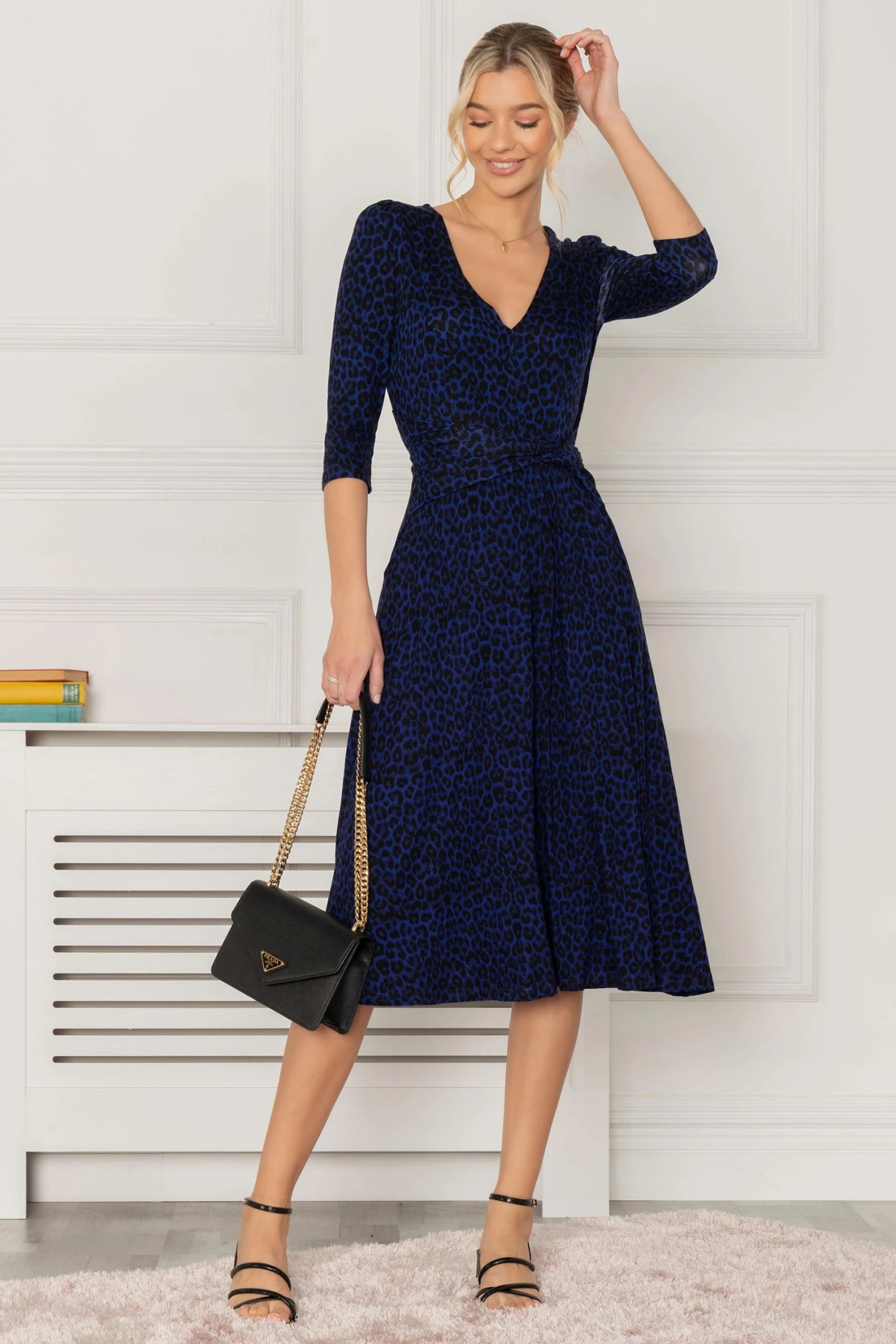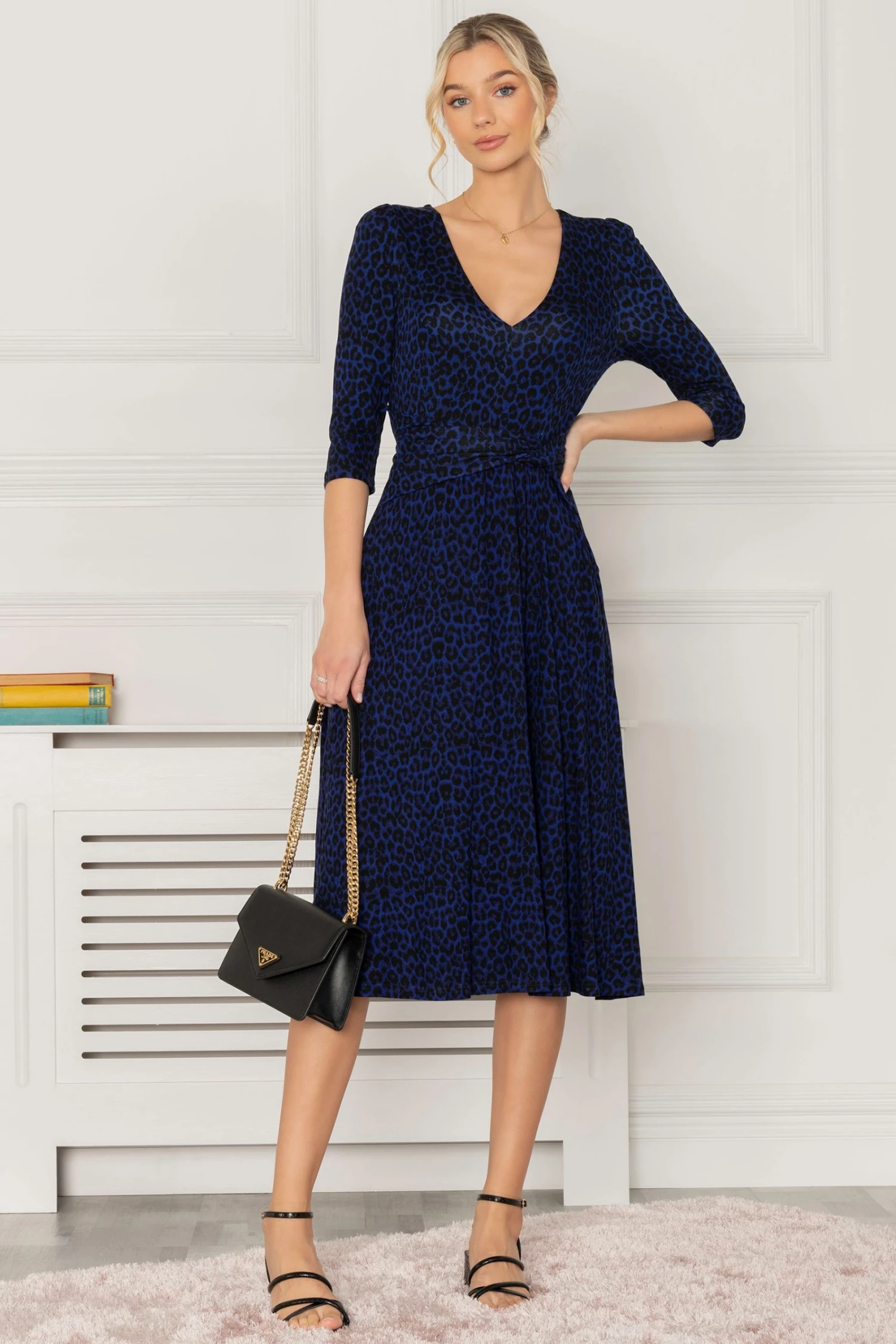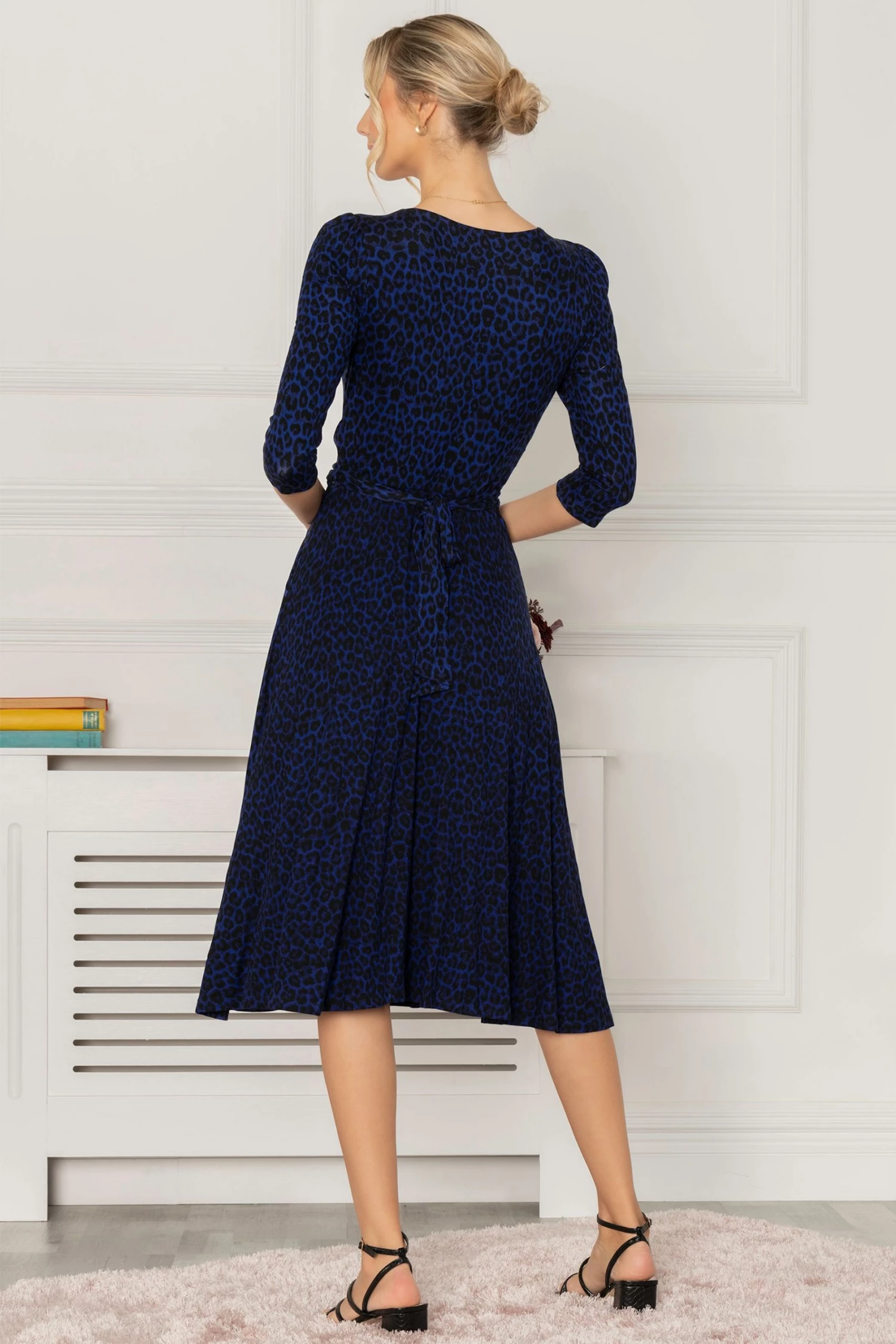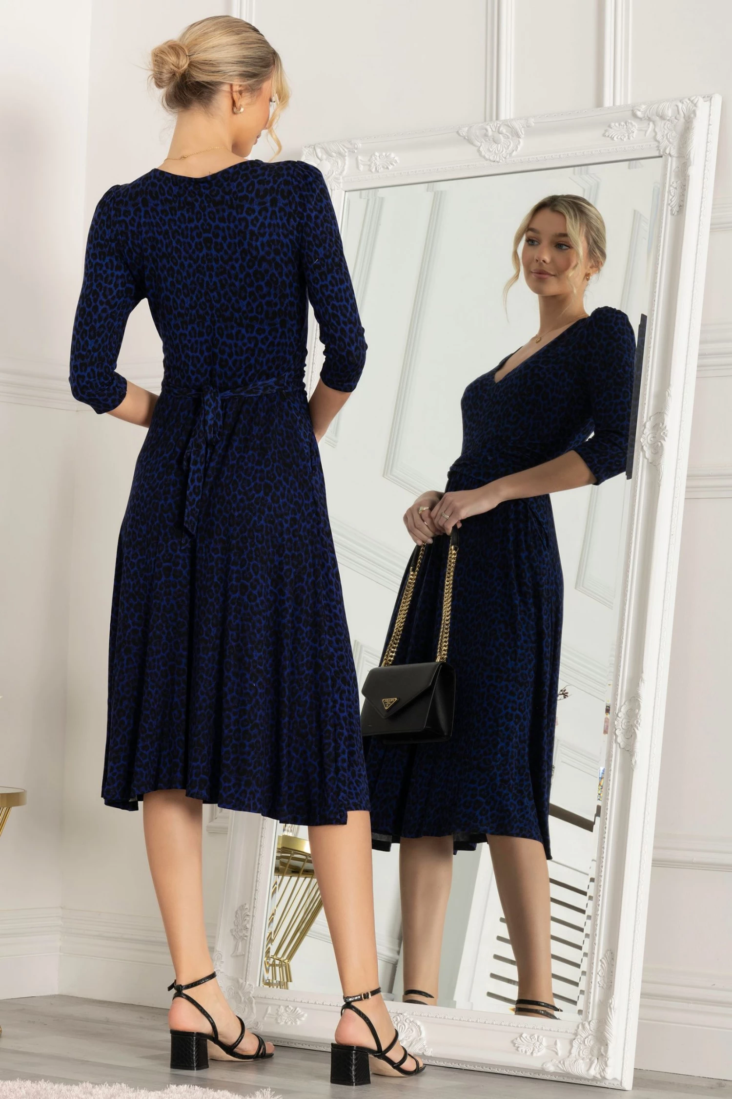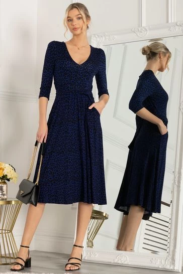 The Delylah dress is made from soft to the touch jersey fabric and has an attention grabbing animal print pattern. The dress features quarter length sleeves, a flattering wide V-neckline, and a below the knee midi hem. Add a pair of strappy heels and clutch for a night out with the girls. This dress is the perfect addition to any wardrobe.