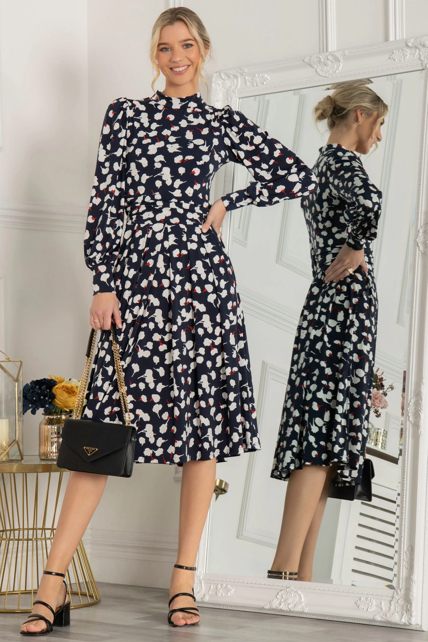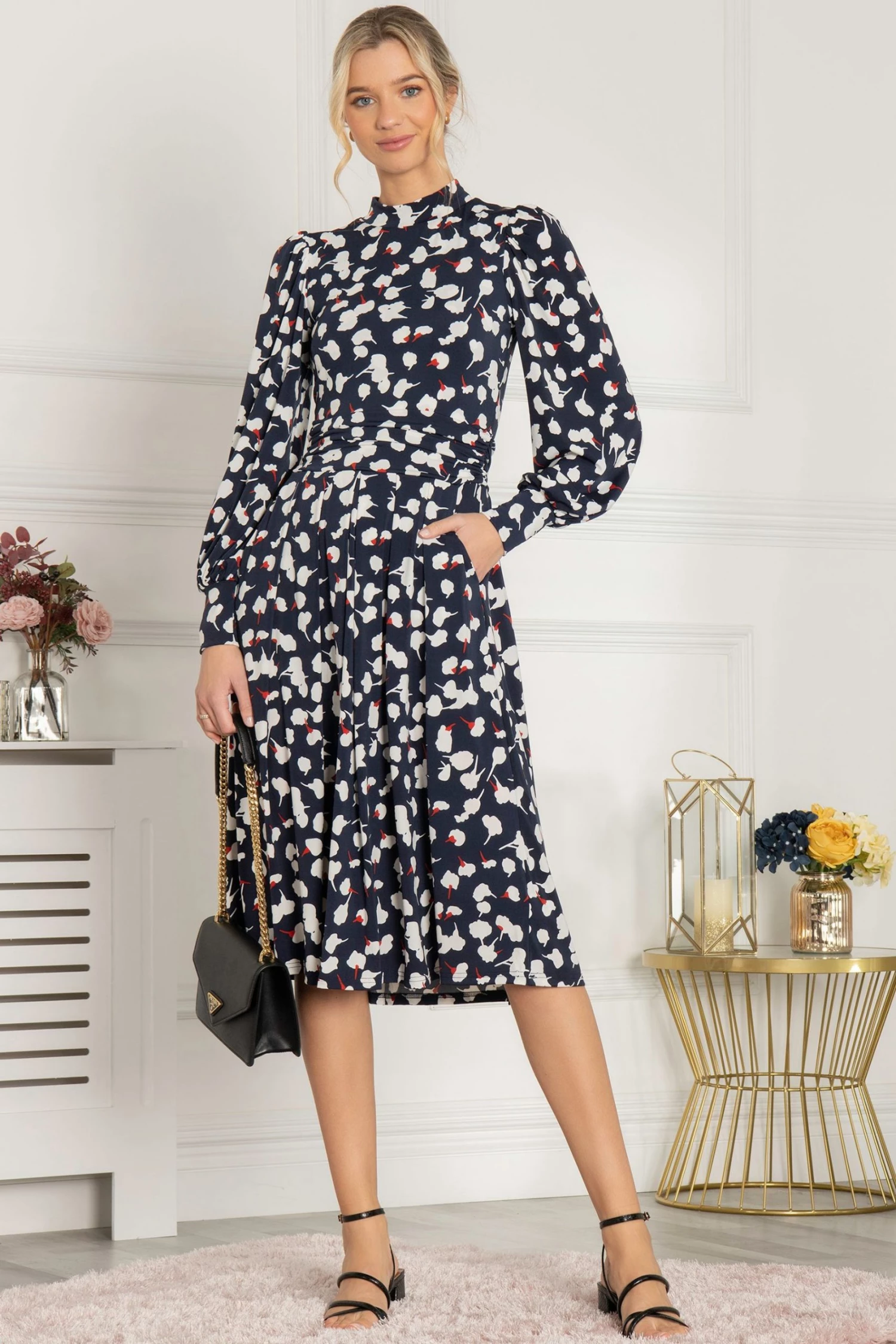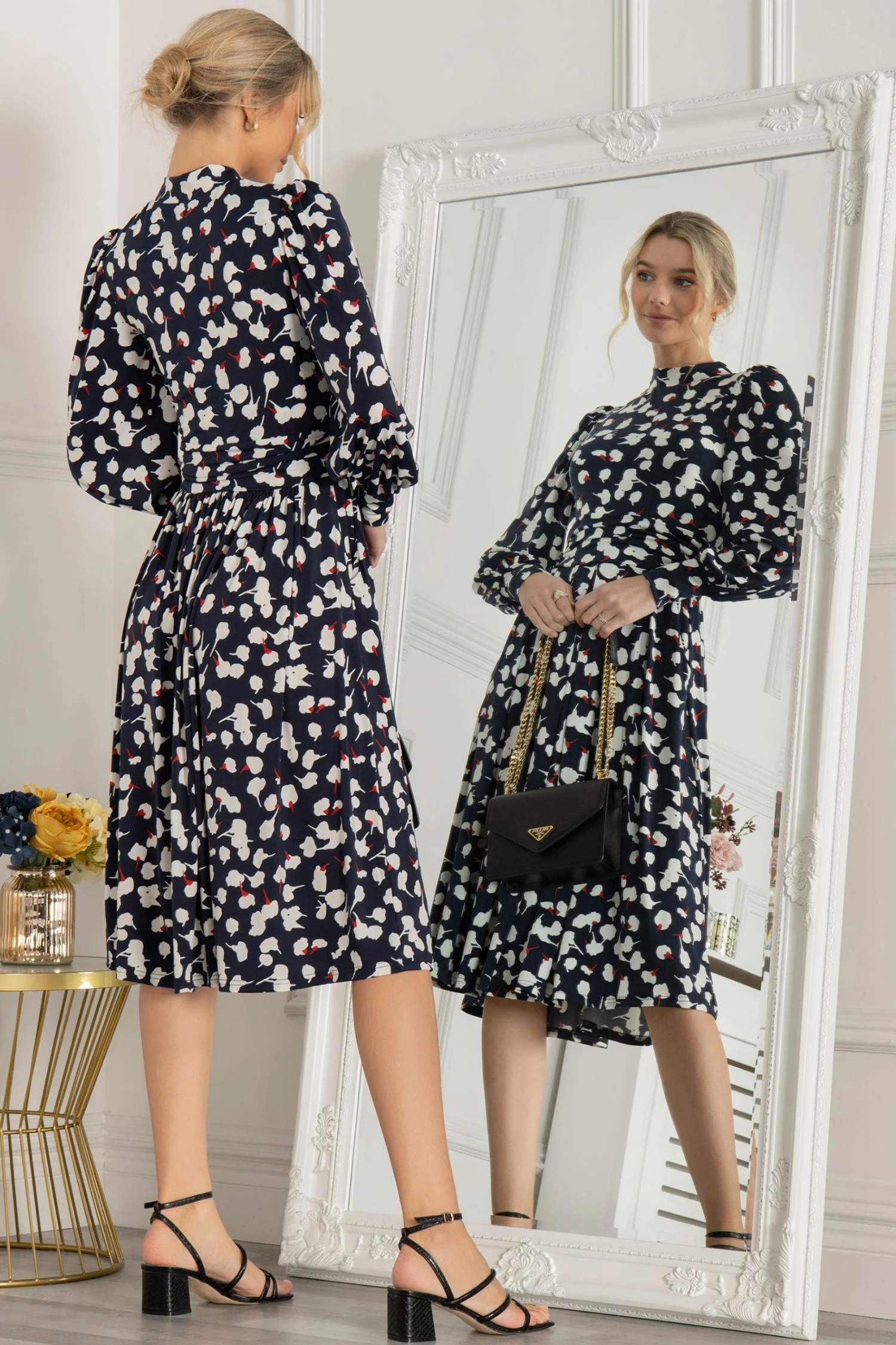 Smartening your look with this timeless midi dress from Jolie Moi, it is ideal for work or play. Framed with a turtle neckline and long sleeves, this piece nips you in all the right places. This effect is repeated around the elasticated waistline and long voluminous sleeves. A simple style that ensures an effortless, elegant look for smart or casual days.
