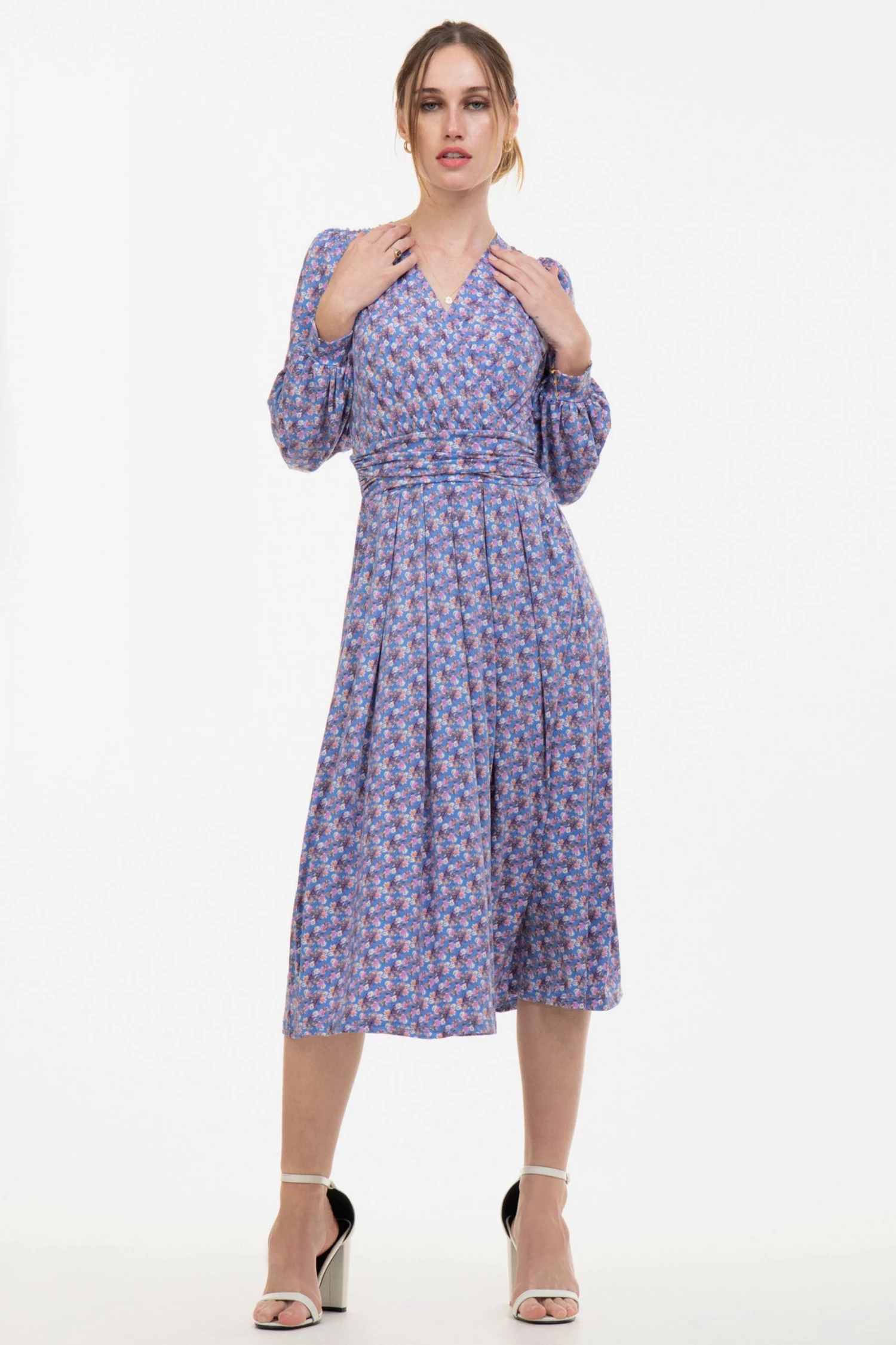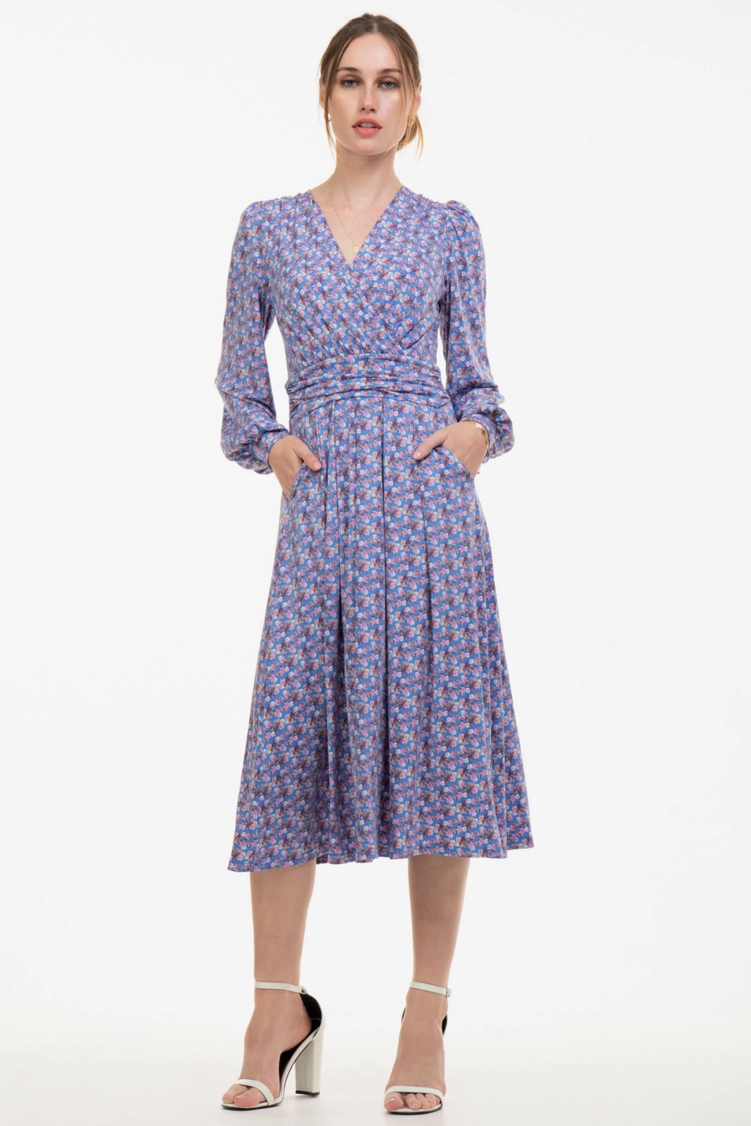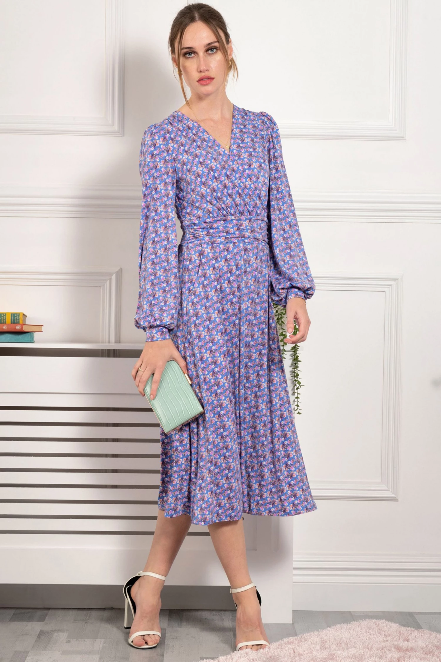 With a refined wrap front and flared hem, this maxi dress by Jolie Moi is printed with fresh florals throughout. Accentuating the figure with a wrap over front and long sleeves, it is one for the office on days when you have after-work drinks.