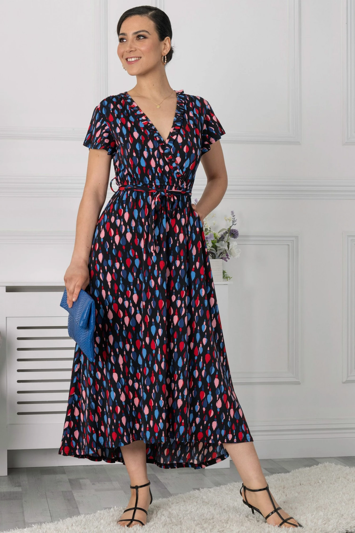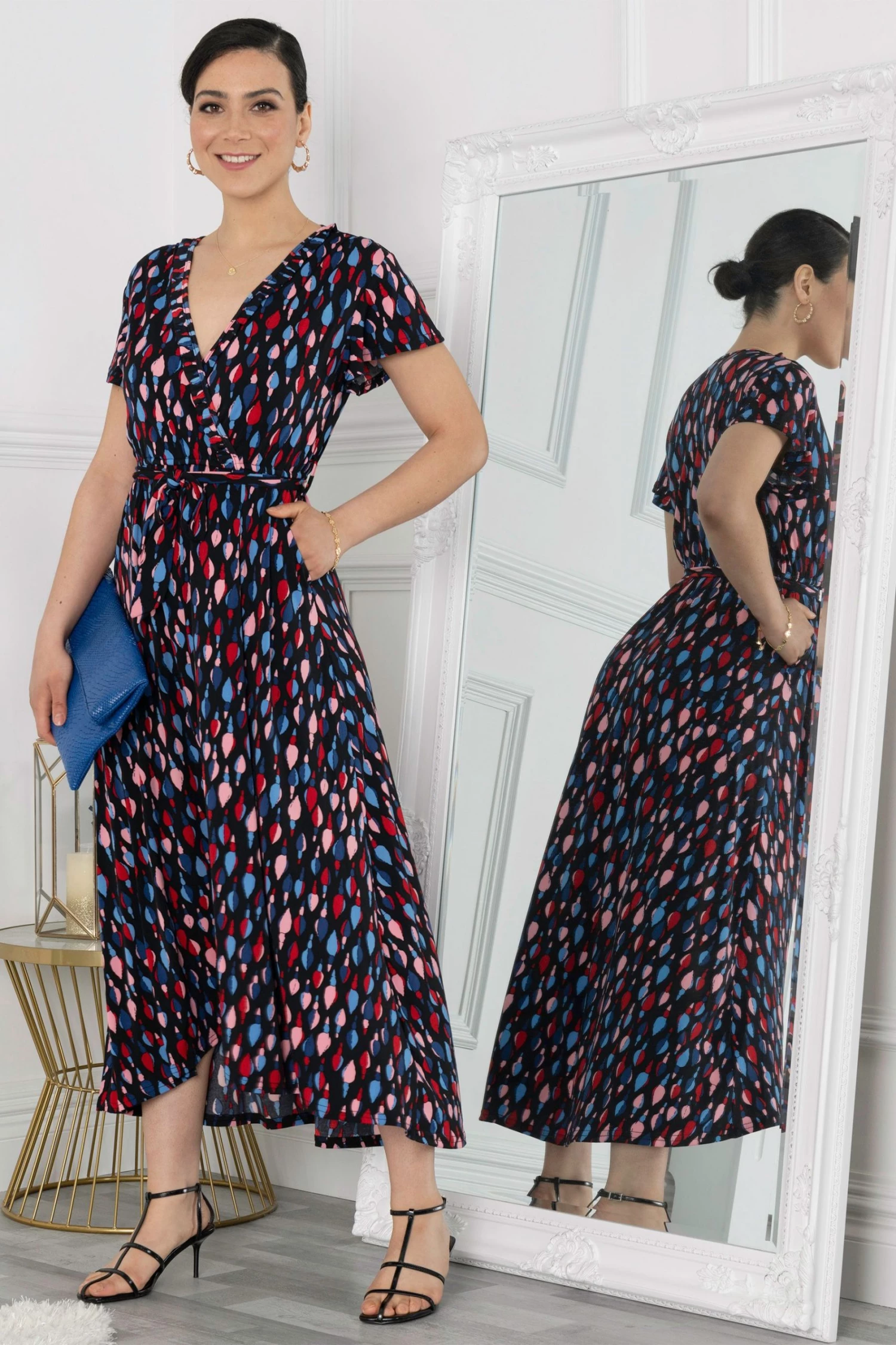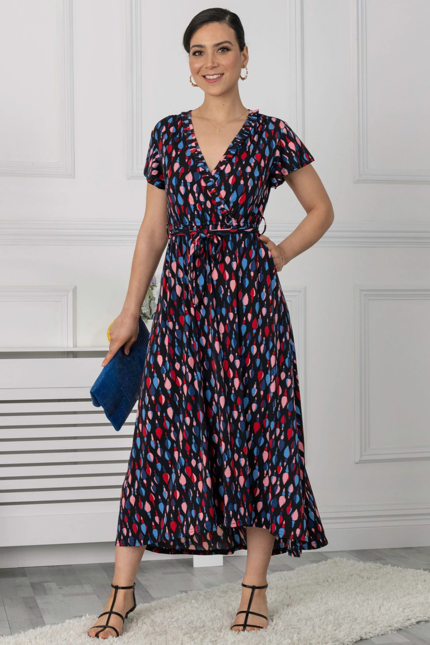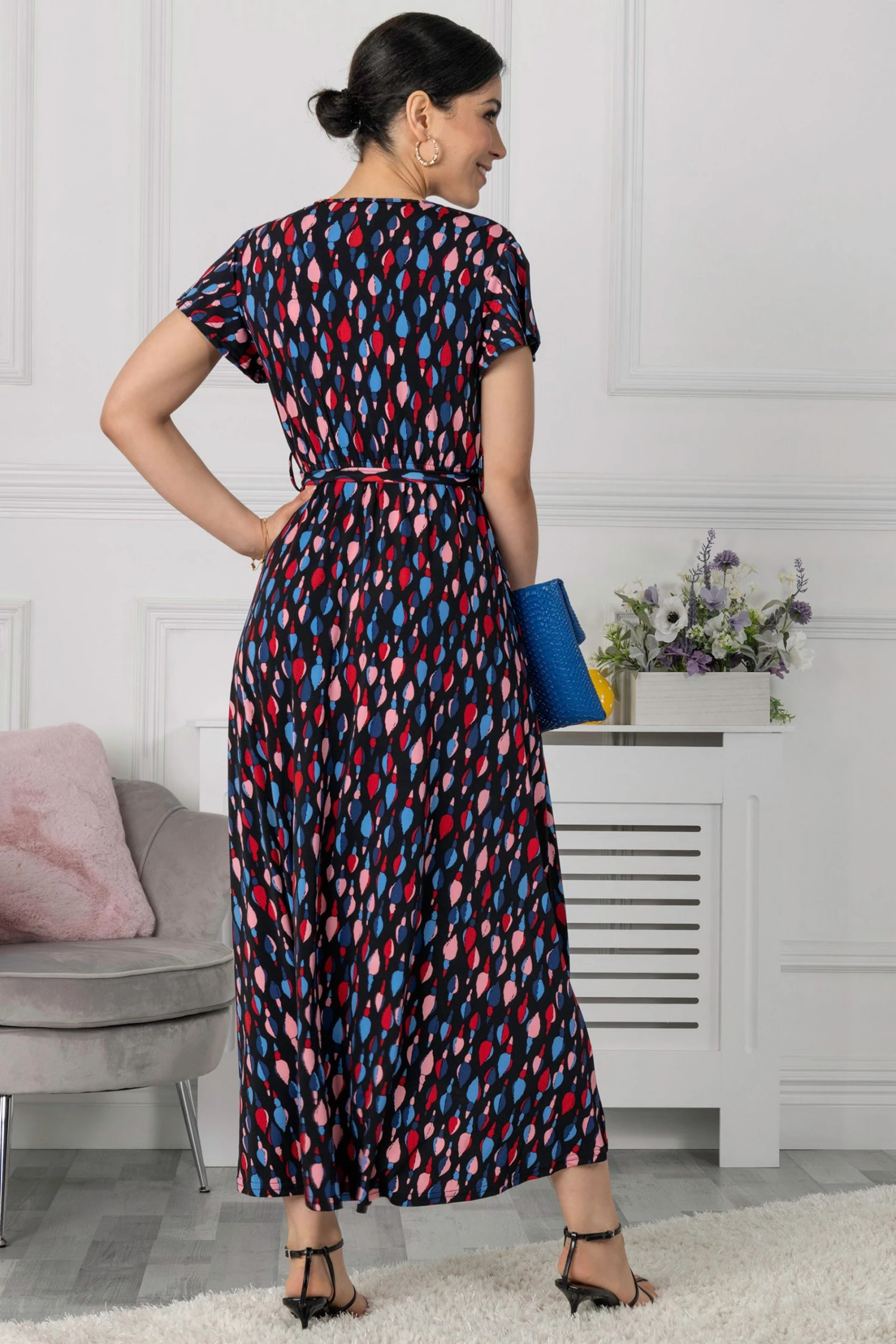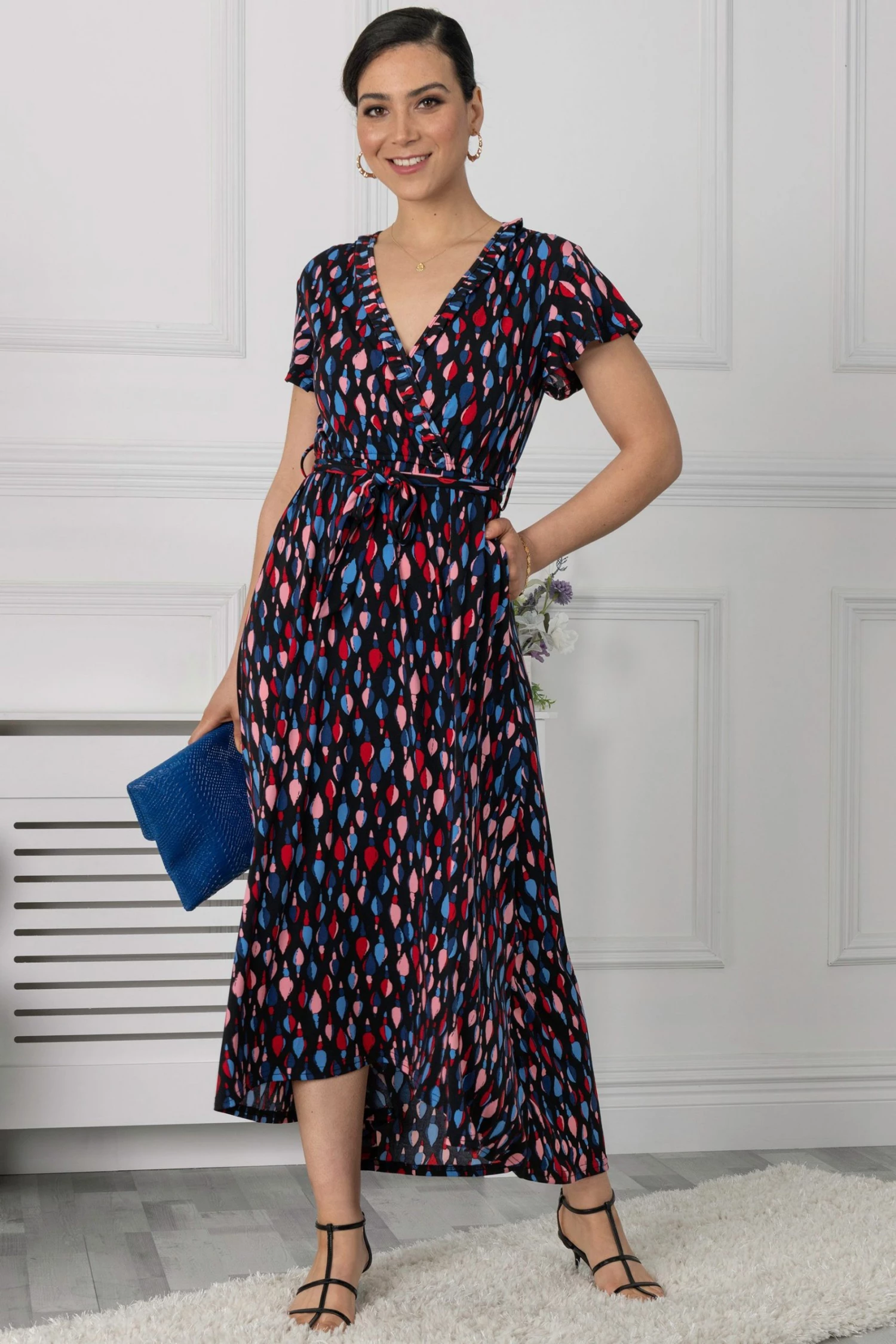 Effortless style made easy, this dress from Jolie Moi can be dressed up or down for any occasion. Designed with a bold leafy print throughout, this piece blends a loose-fitting wrap bodice with flare cap sleeves that create a flattering and feminine look. The elasticated waistline with a self-tie belt adds definition before flowing down into dip hem maxi skirt. Completed with two side pockets and partially lined, it matches equally well with trainers, pumps and sandals.