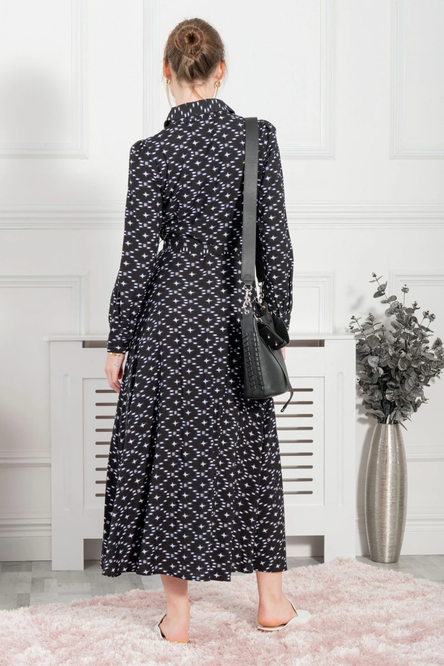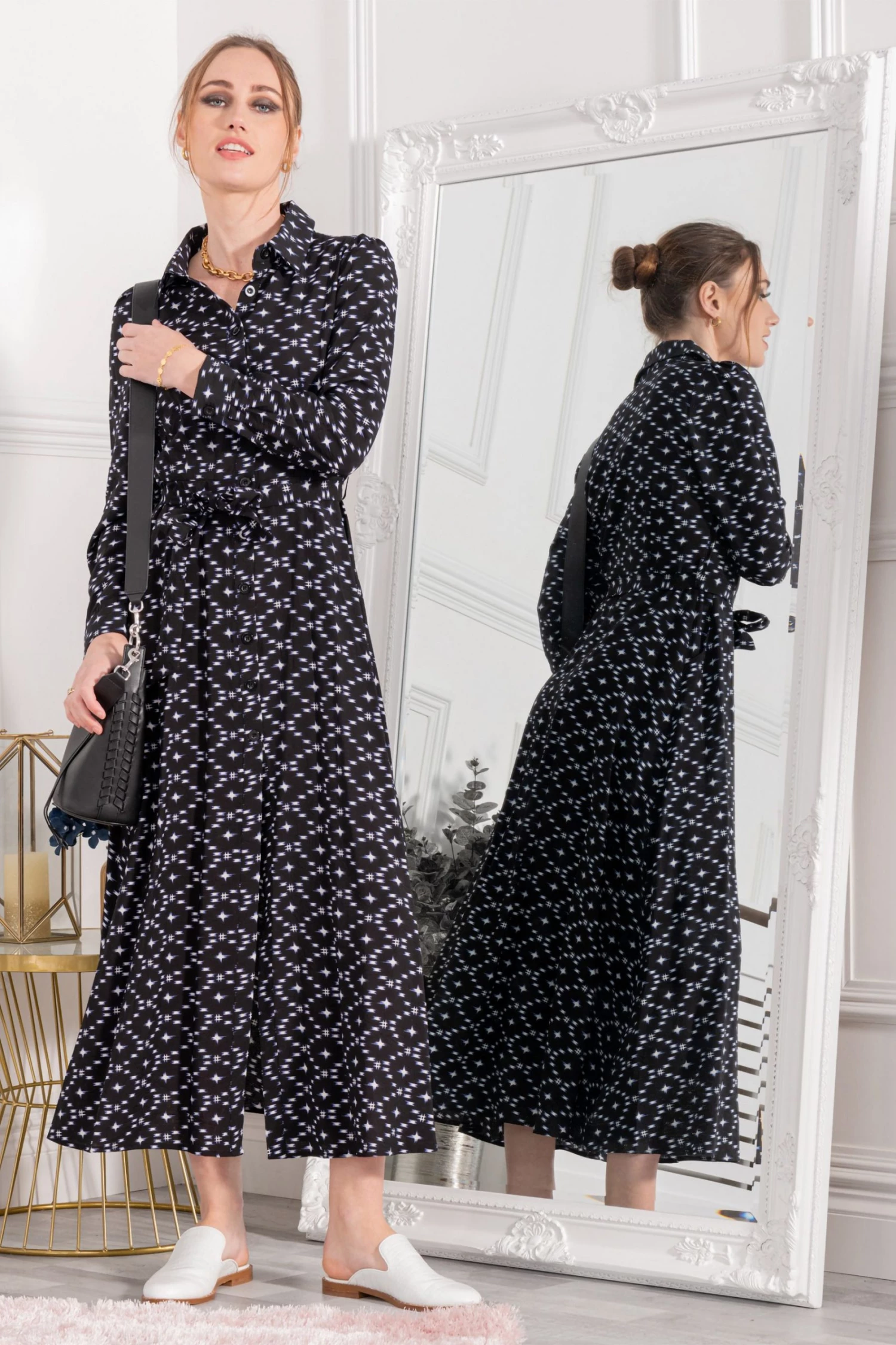 Add a playful element to your ensemble with this shirt dress from Jolie Moi. Defined with a neat collar and full length sleeves, this statement piece is completed with two side pockets and a self-tie belt which adds waist definition. Falling to a maxi length, it is elegant and stylish whilst having a pop of colour and youthful feel thanks to the contrast bold print that runs throughout. this piece is one to whip out at the weekend, from strolls in the city to Friday night out with the girls.