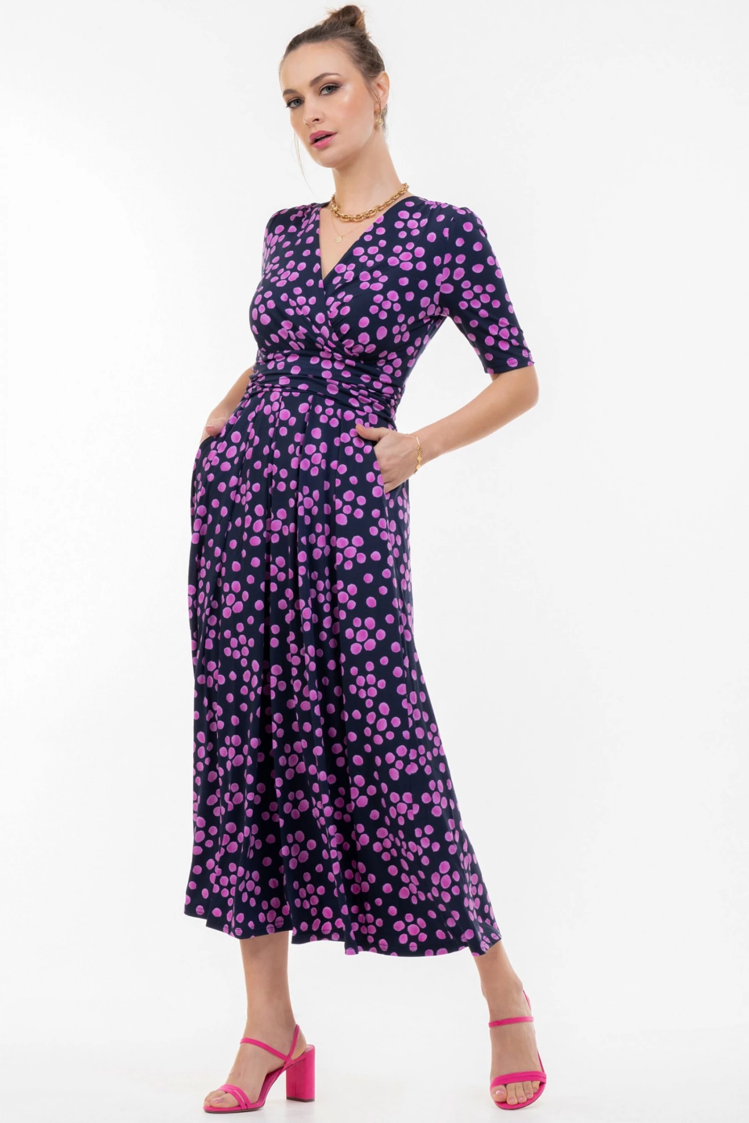 A go-to piece for less formal events, this dress offers a fluid design, which stands out with its all-over eye-cathing print. Equipped with an elasticated waist to ensure a form-flattering silhouette, completed with a flattering V-neckline and short sleeves, it is made from a soft and fluid blended fabric and is a pretty piece you’ll reach for again and again.