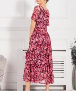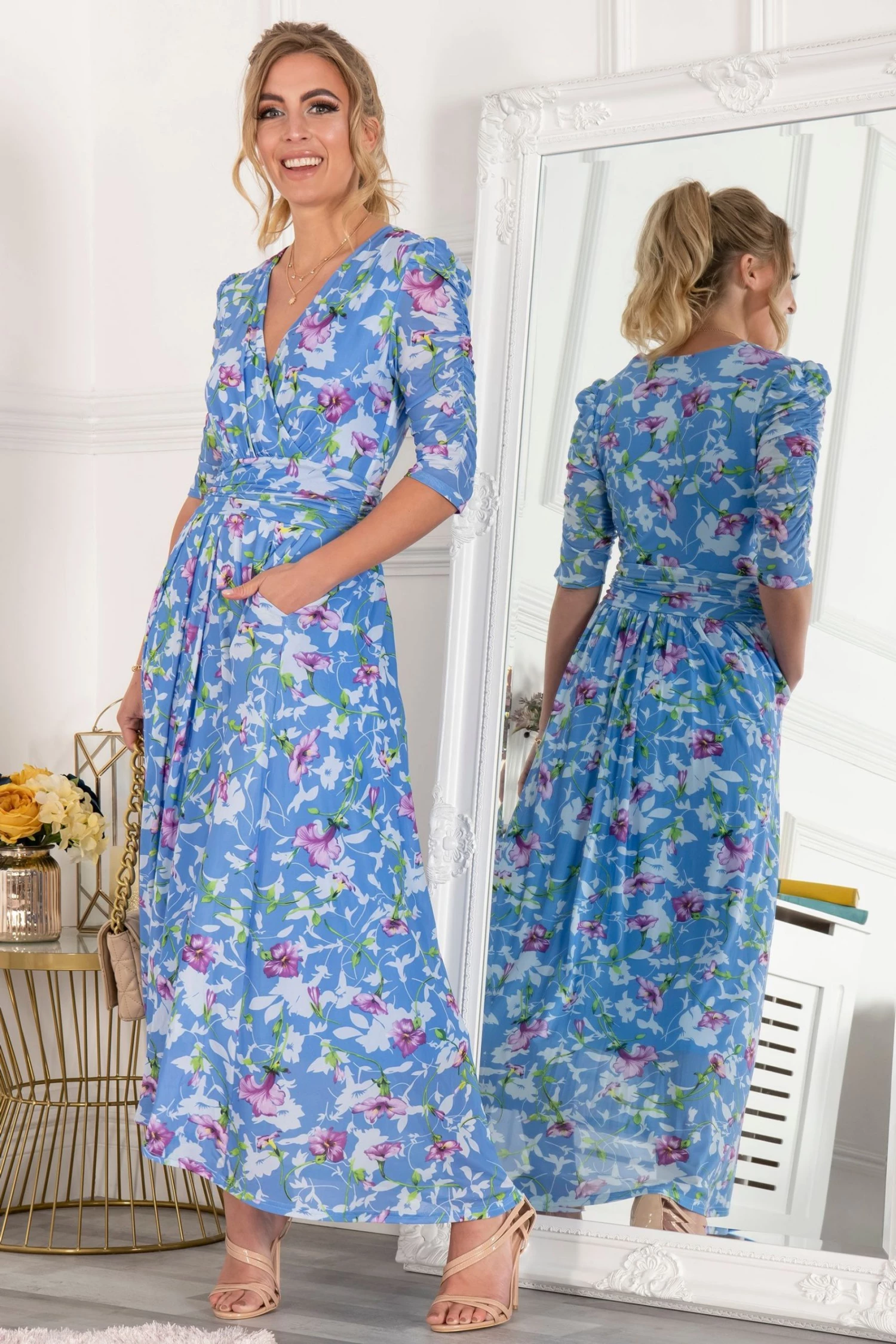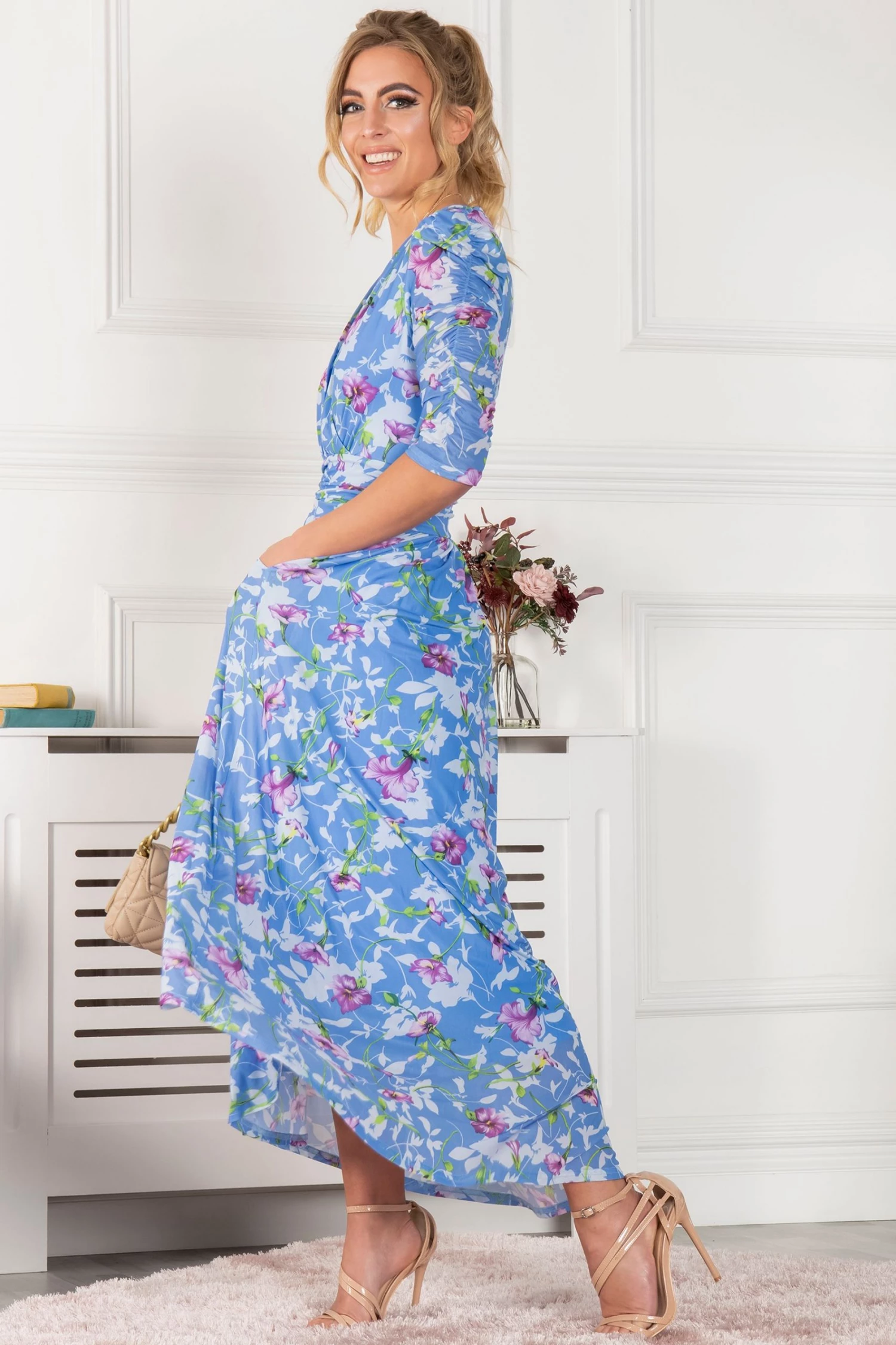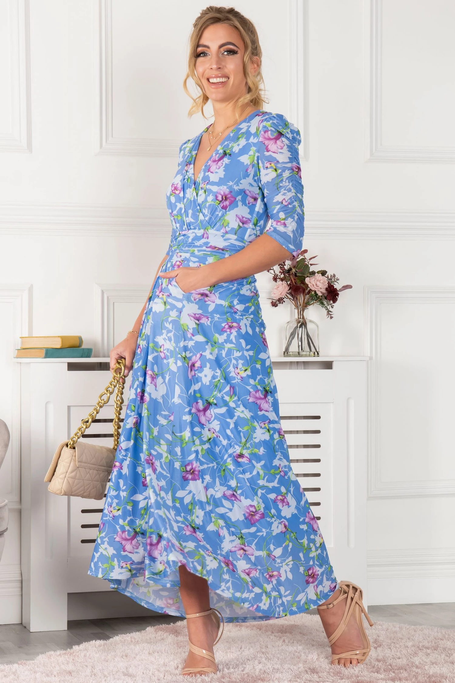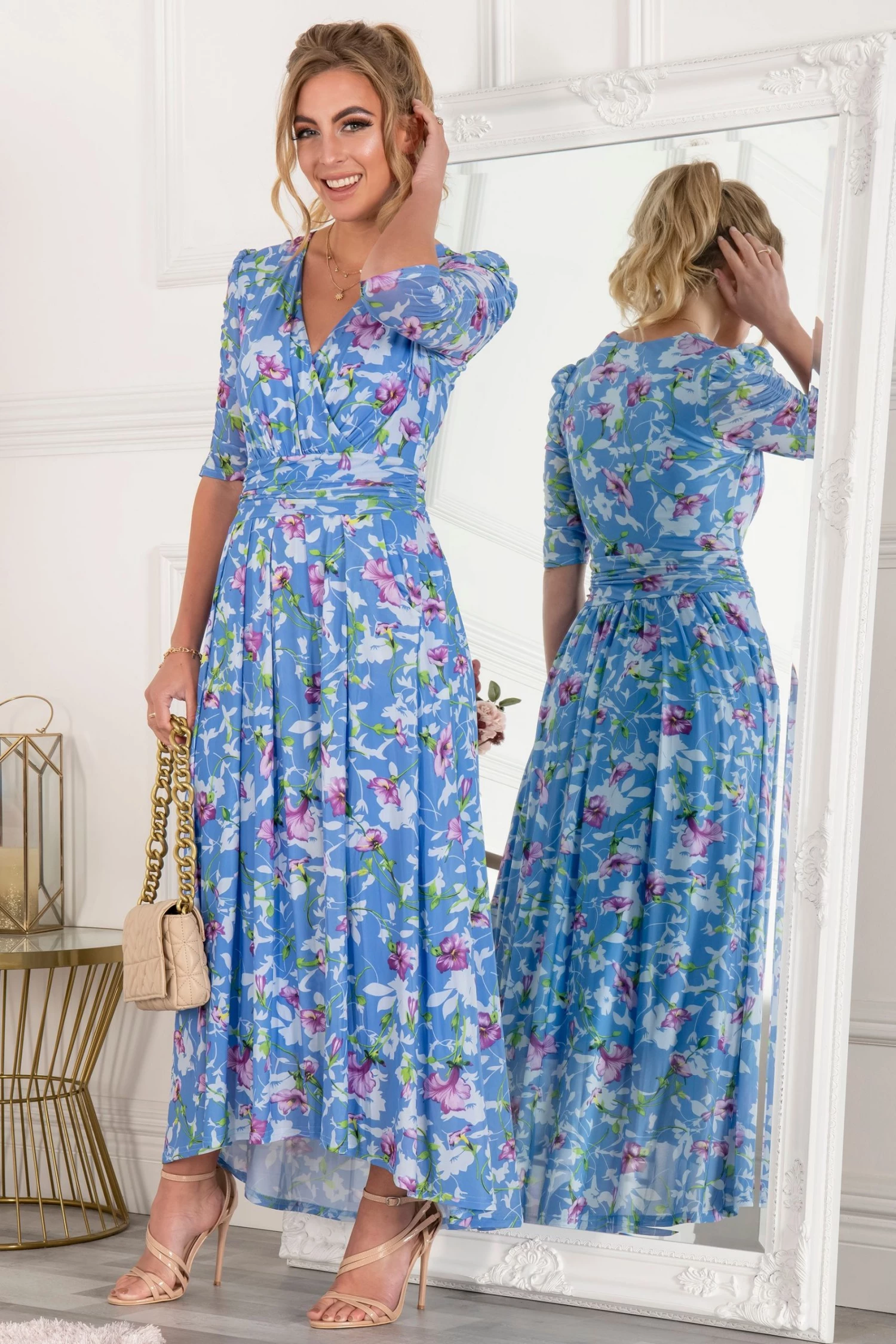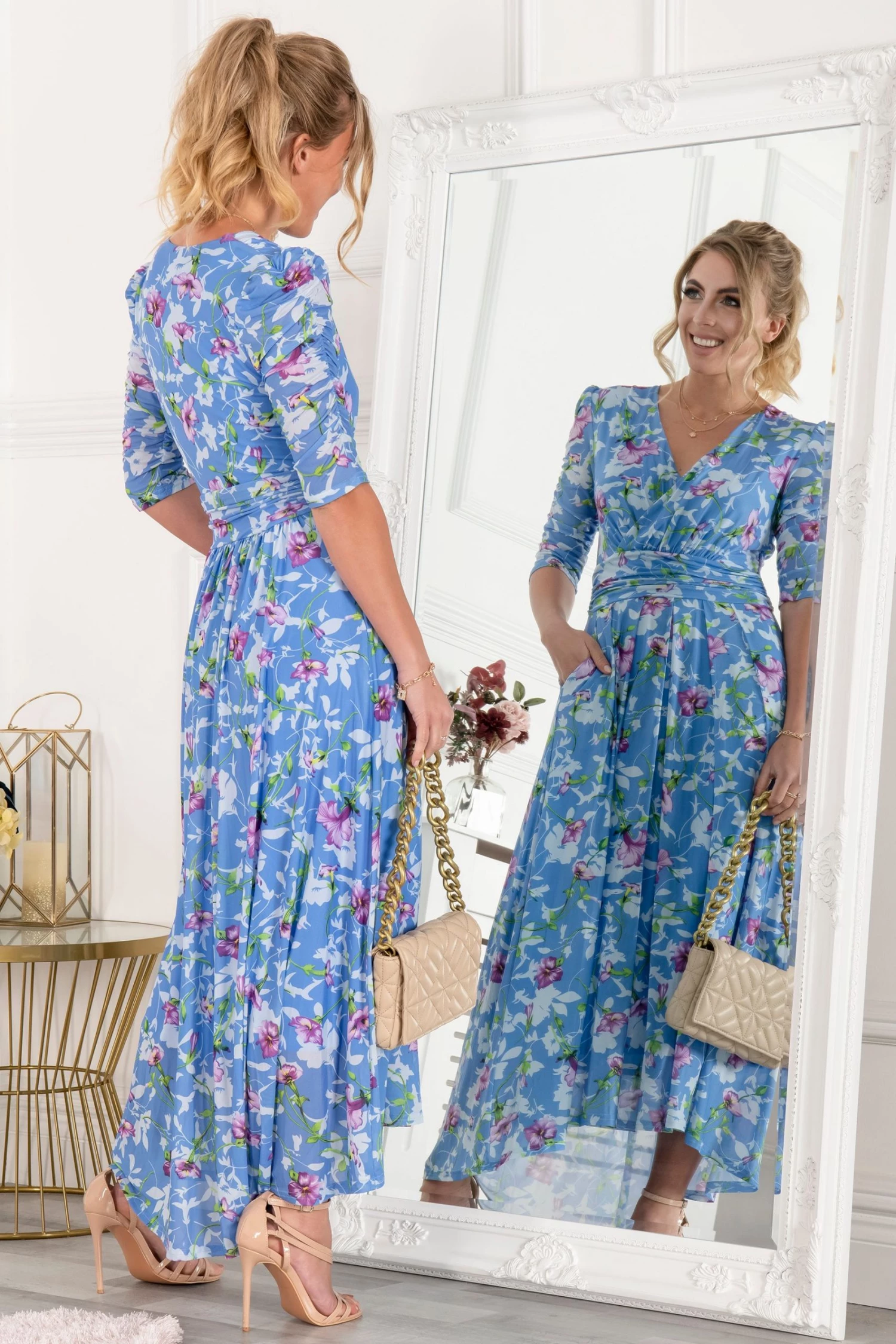 Made from a premium mesh fabric with a soft inner lining. This dress from Jolie Moi has a high low hem design that drapes and flares for added movement and comfort. Its floral pattern is elegant and stylish. Equipped with an elasticated waist to ensure a comfortable and true to form fit. Completed with a V-neckline, ruched sleeves, and functional pockets. The dress will be a knock out for any wedding occasion and one that you will reach for time and time again.