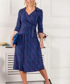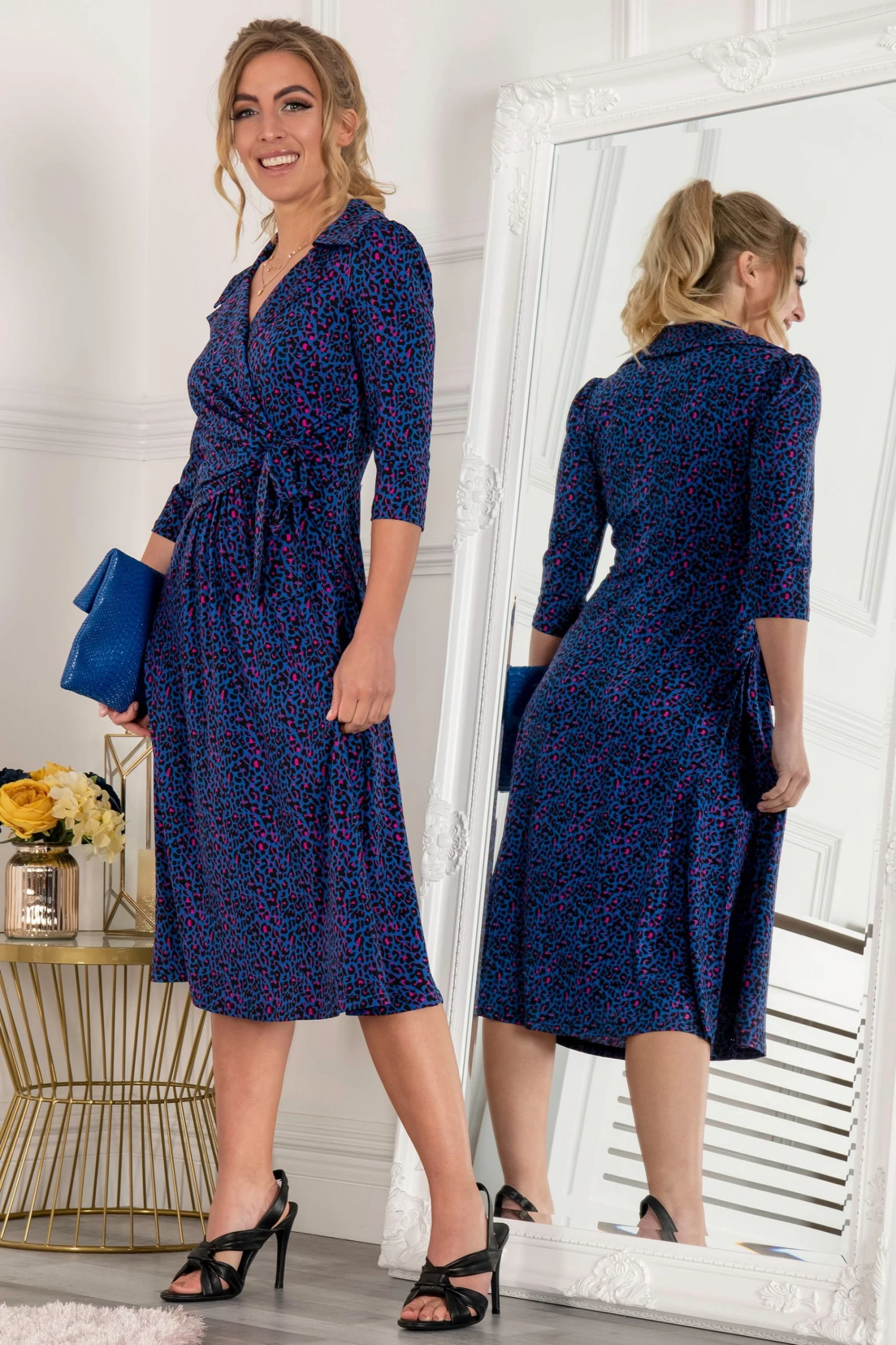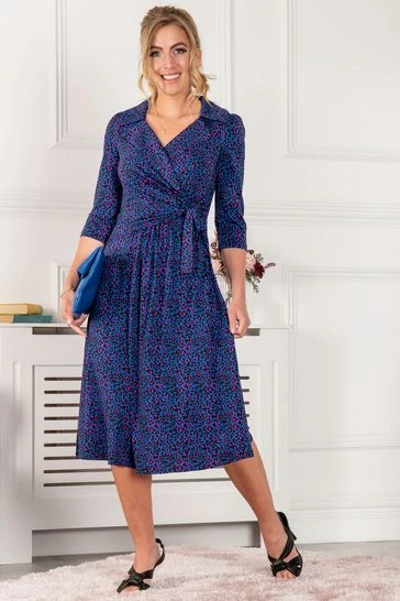 Bringing a new take on the midi dress. The Sylvie wrap midi dress by Jolie Moi is made from a soft to the touch jersey fabric and has a striking animal print pattern. The dress features quarter length sleeves, a flattering wide V-neckline, smart lapel collar, and a below the knee midi hem design. Guaranteed to stand out in your wardrobe and make you reach for time and time again.