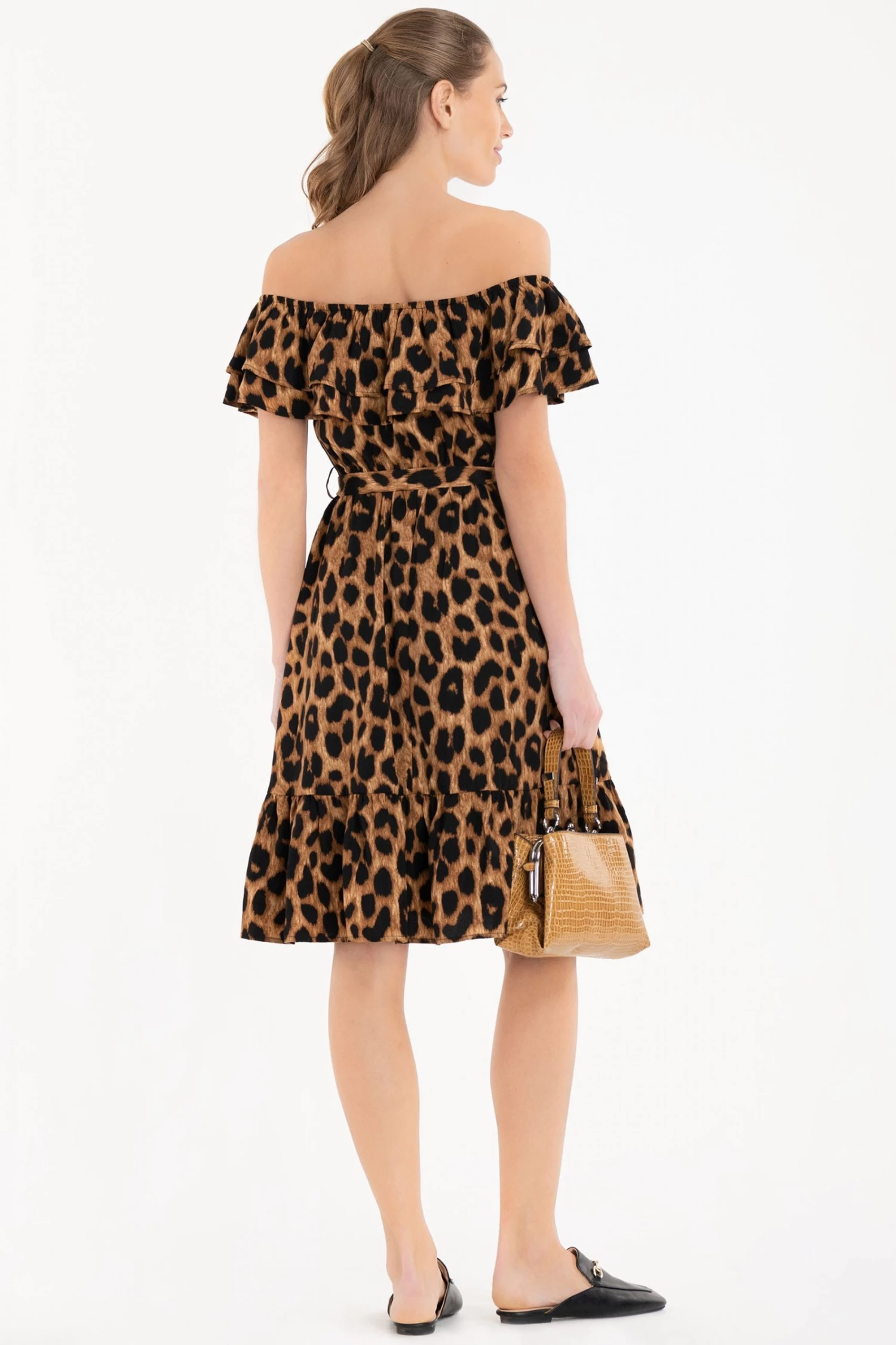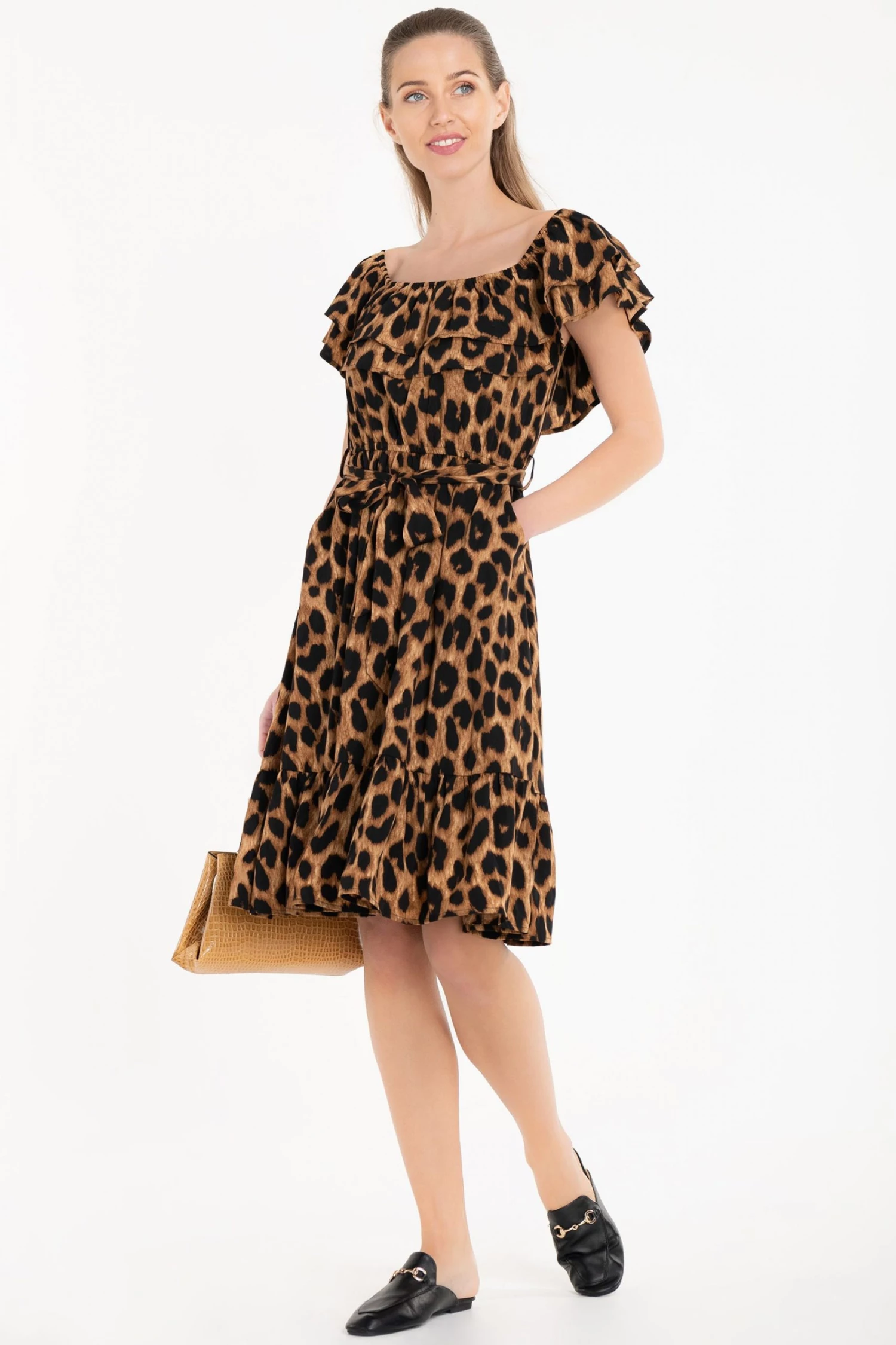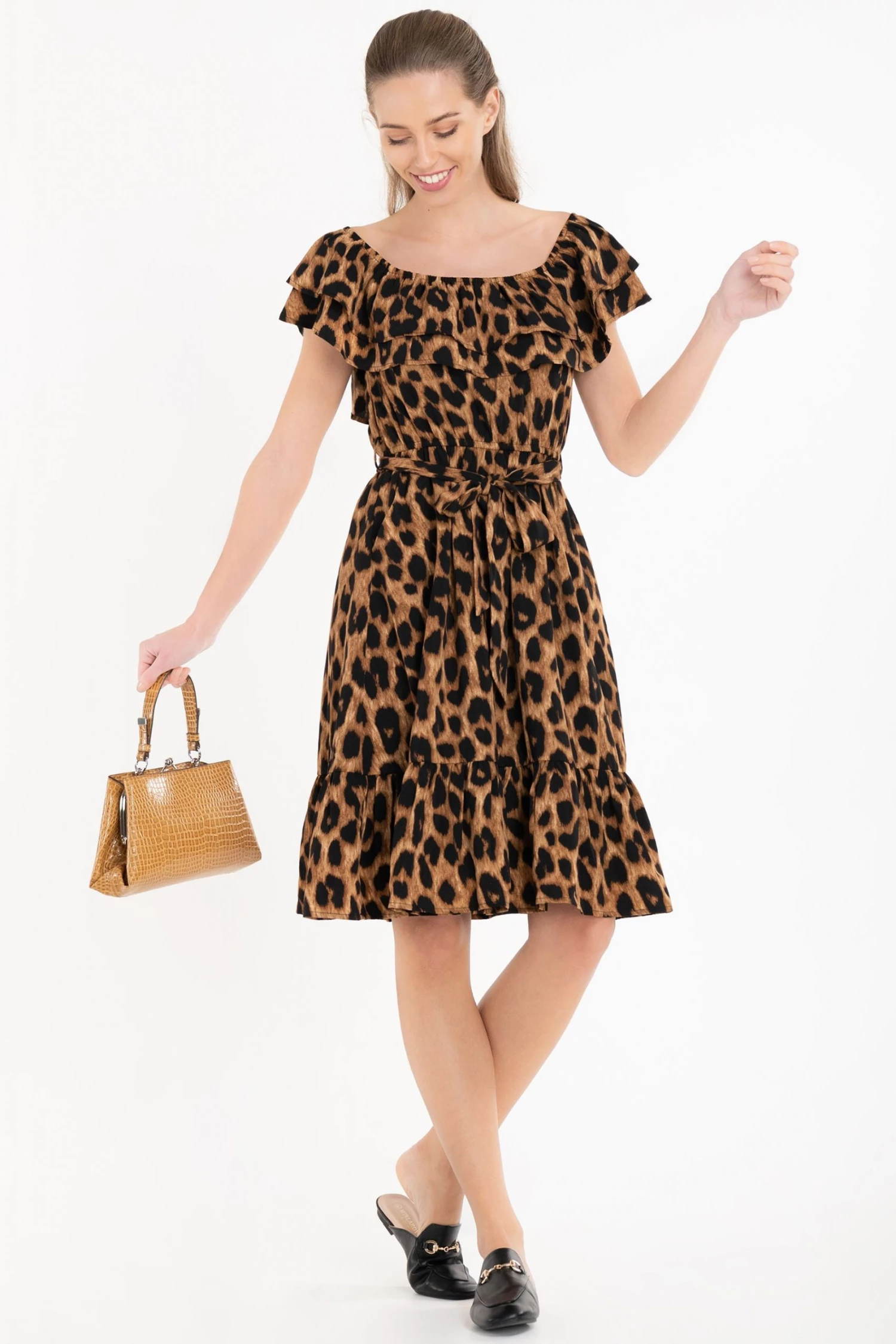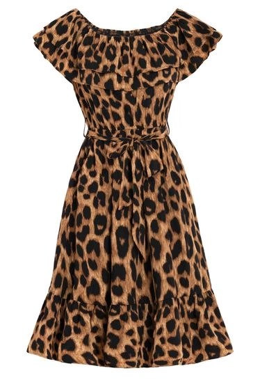 Flaring out at the hem with tiered ruffles for added movement and volume, this skater dress from Jolie Moi catches the eye with a bold animal print. It’s cut from lightweight woven fabric and fully lined for all-day comfort while the tie belt cinches in the waist to give a form-flattering profile. Pair with brogues for work, then switch to boots and a biker jacket for more casual days.