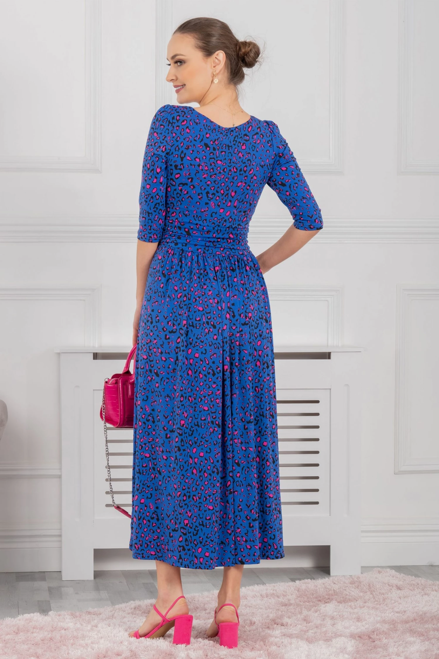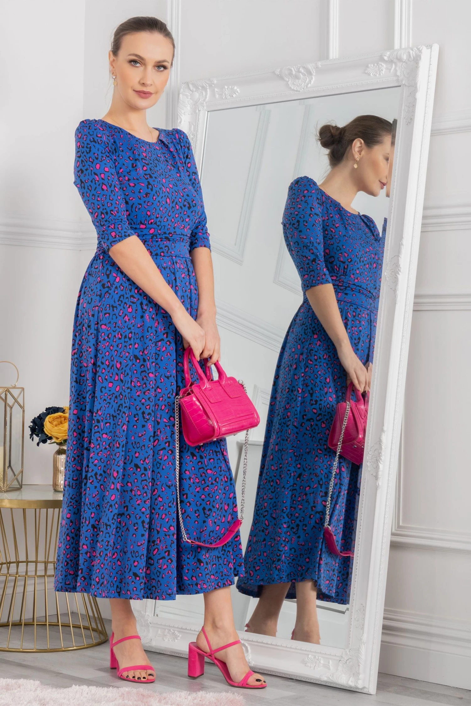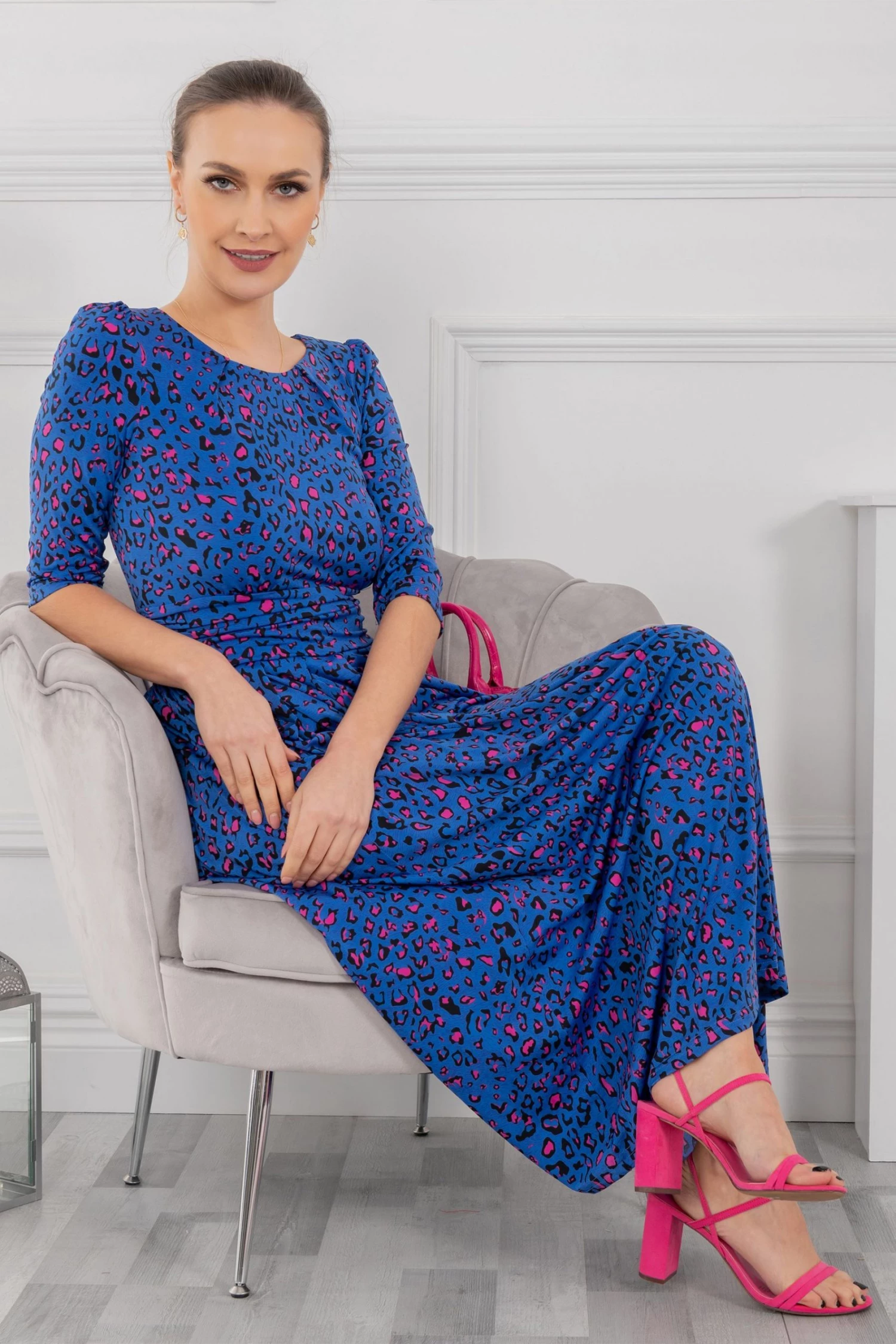 Cast a flowing silhouette in this dress from Jolie Moi. Topped with a boat neckline and three-quarter length sleeves and finished with side pockets for easy wear, it is cut from jersey fabric for a soft, comfortable feel and is a sophisticated option for special occasions.