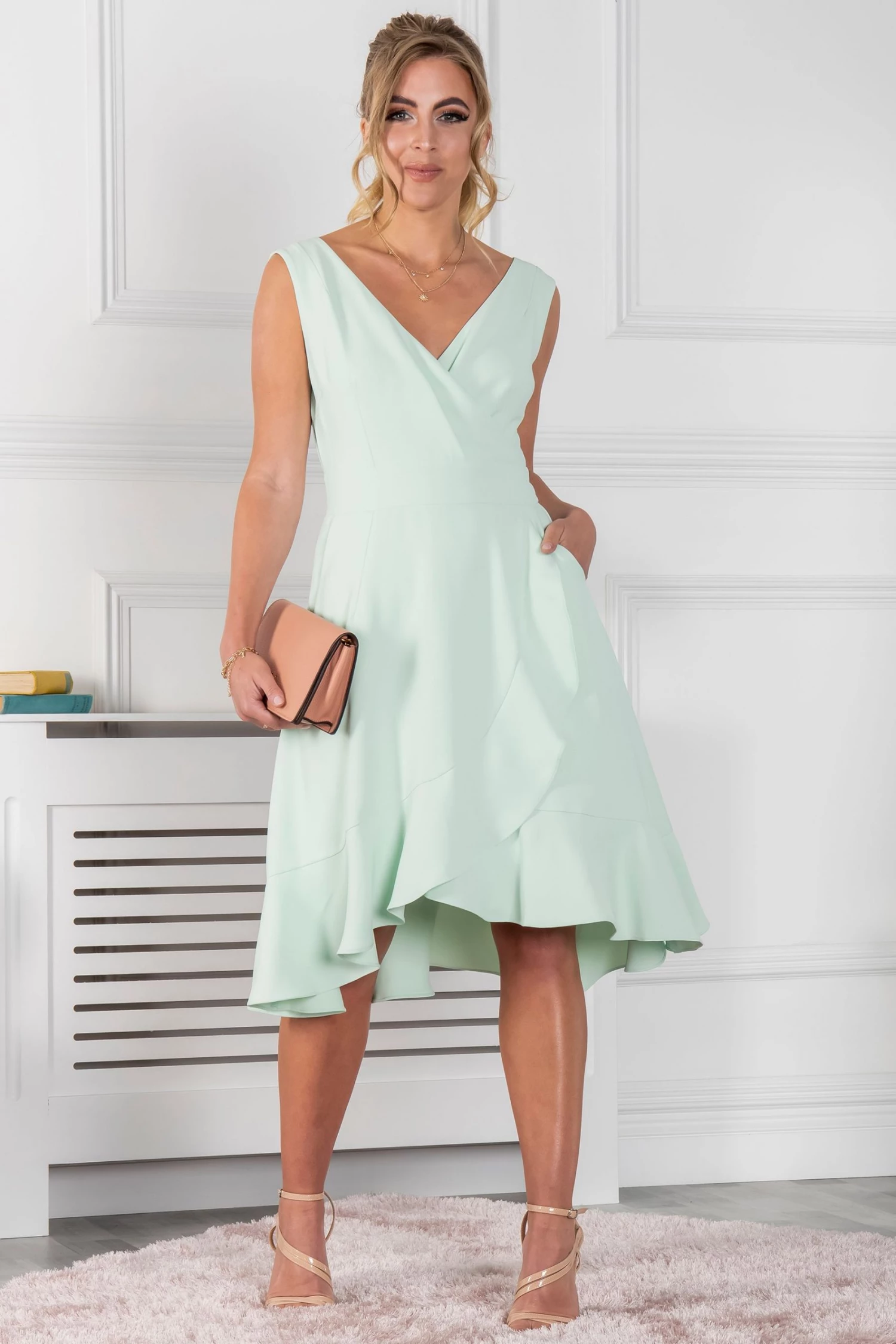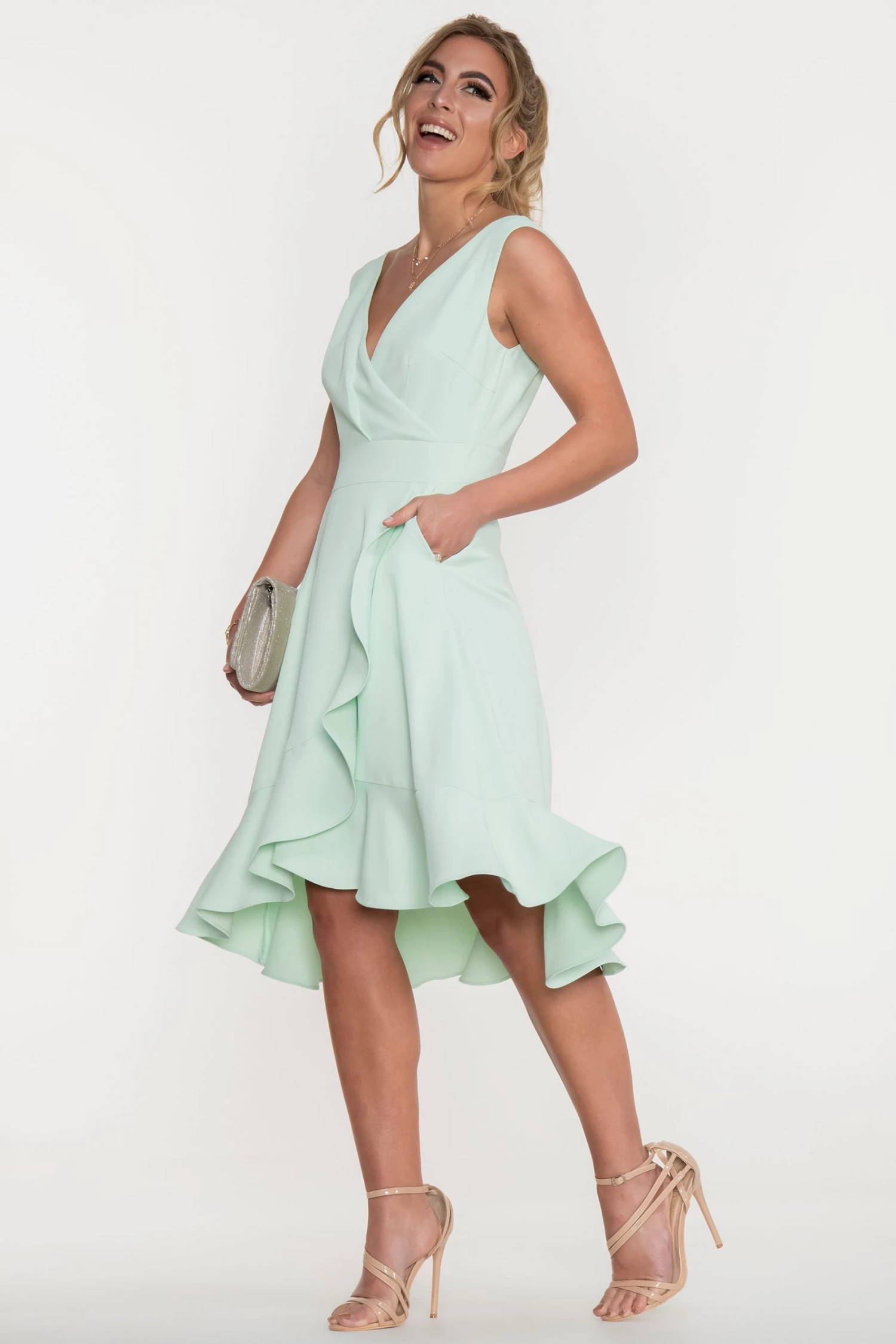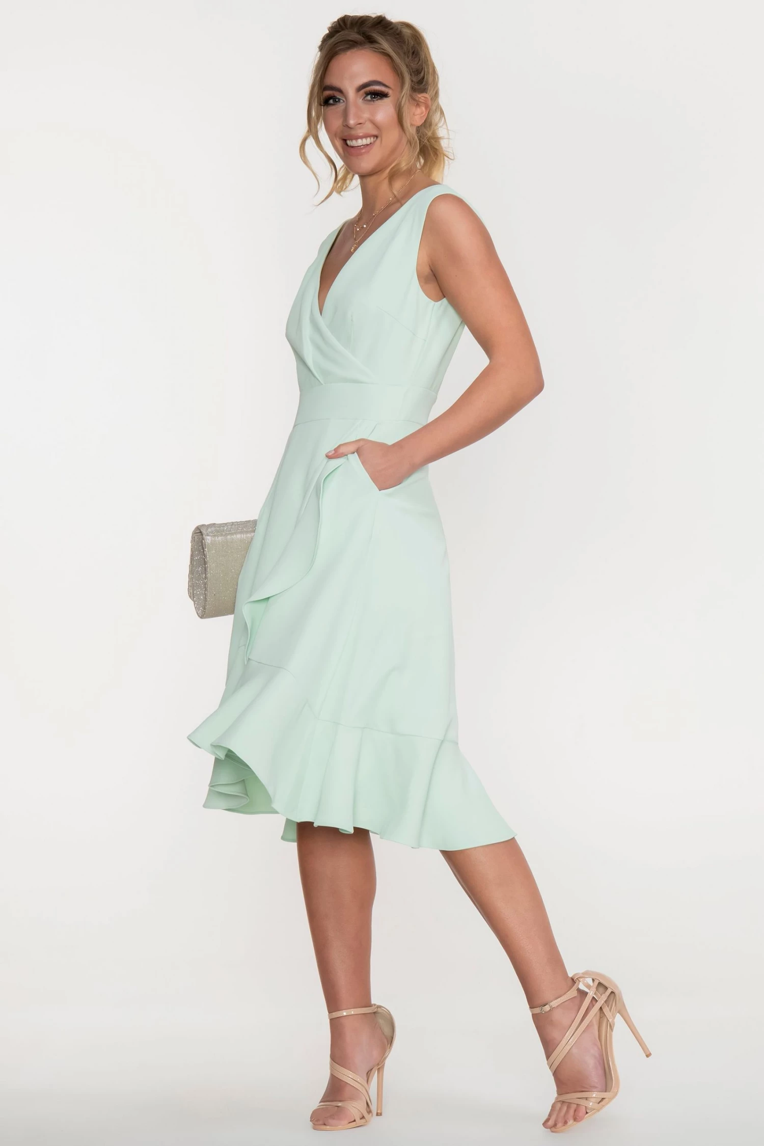 The Eliza frill dress by Jolie Moi is a simple yet elegant midi dress with a sleeveless design. Making it the perfect outfit for any summer event. The dress also features a wrapped V-neckline, and a flounced ruffled hem for maximum flare. Pair it with some scrappy heels to complete the look.