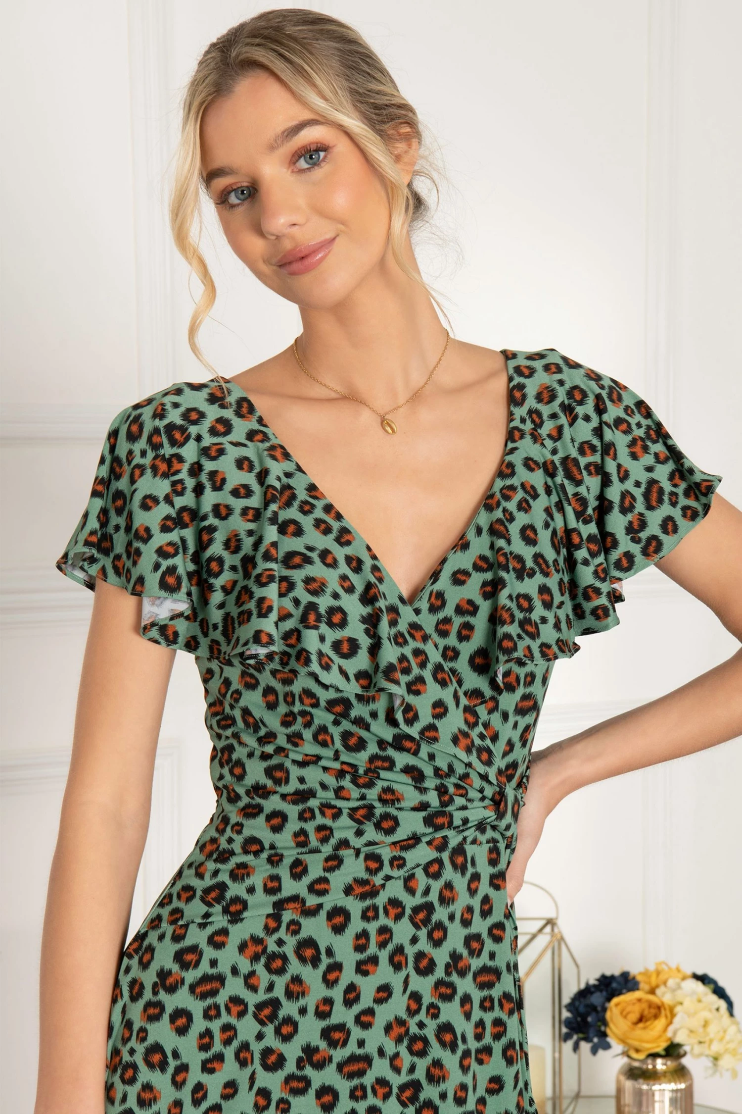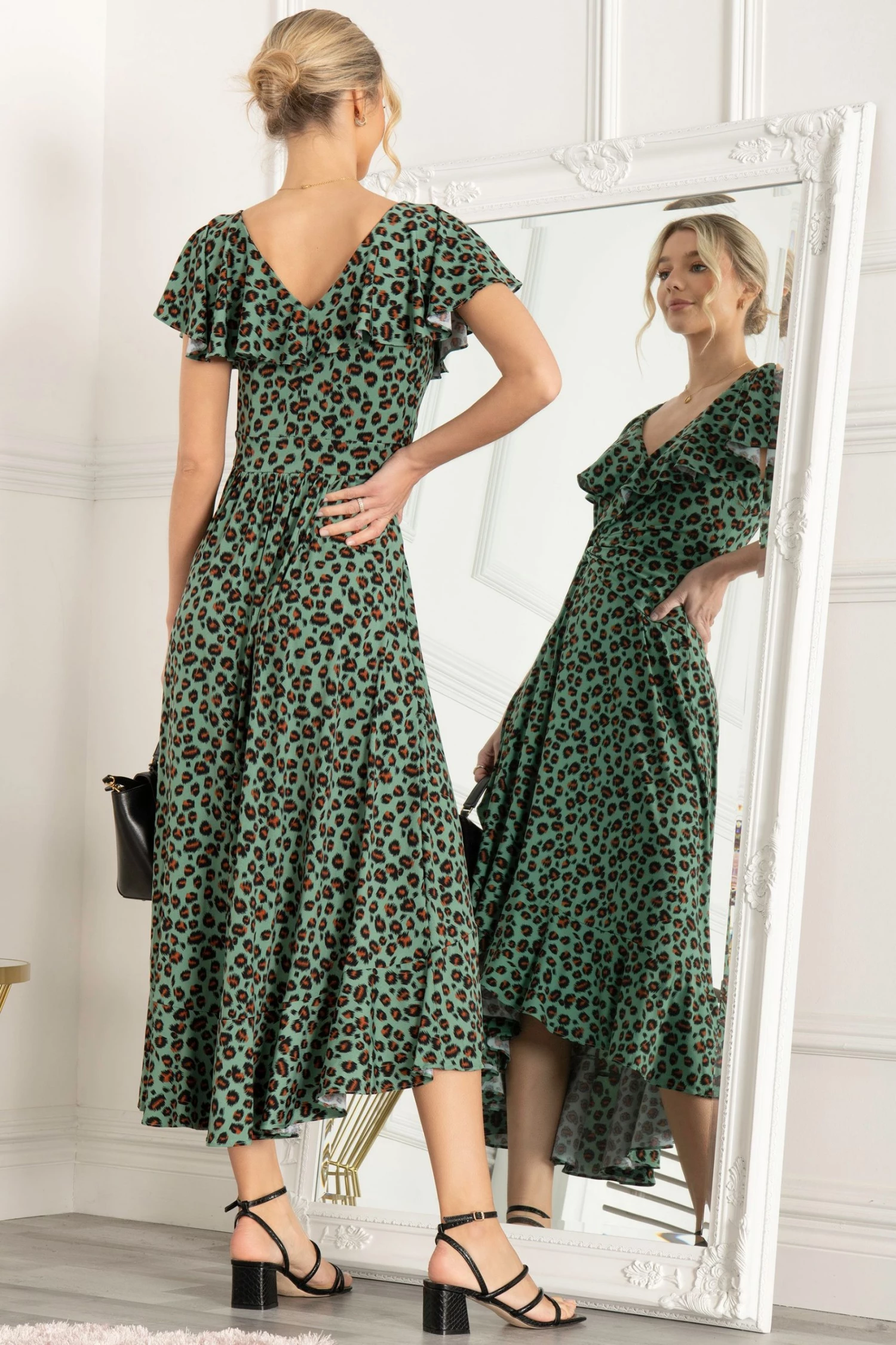 Flaring out at the hem for a feminine silhouette, this midi dress by Jolie Moi delivers a striking look with its vibrant animal print design. Keeping things simple with a V-neckline and cap sleeves, it is a care-free option for wherever the day takes you.