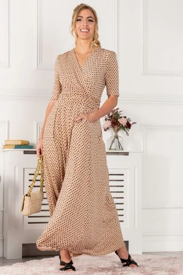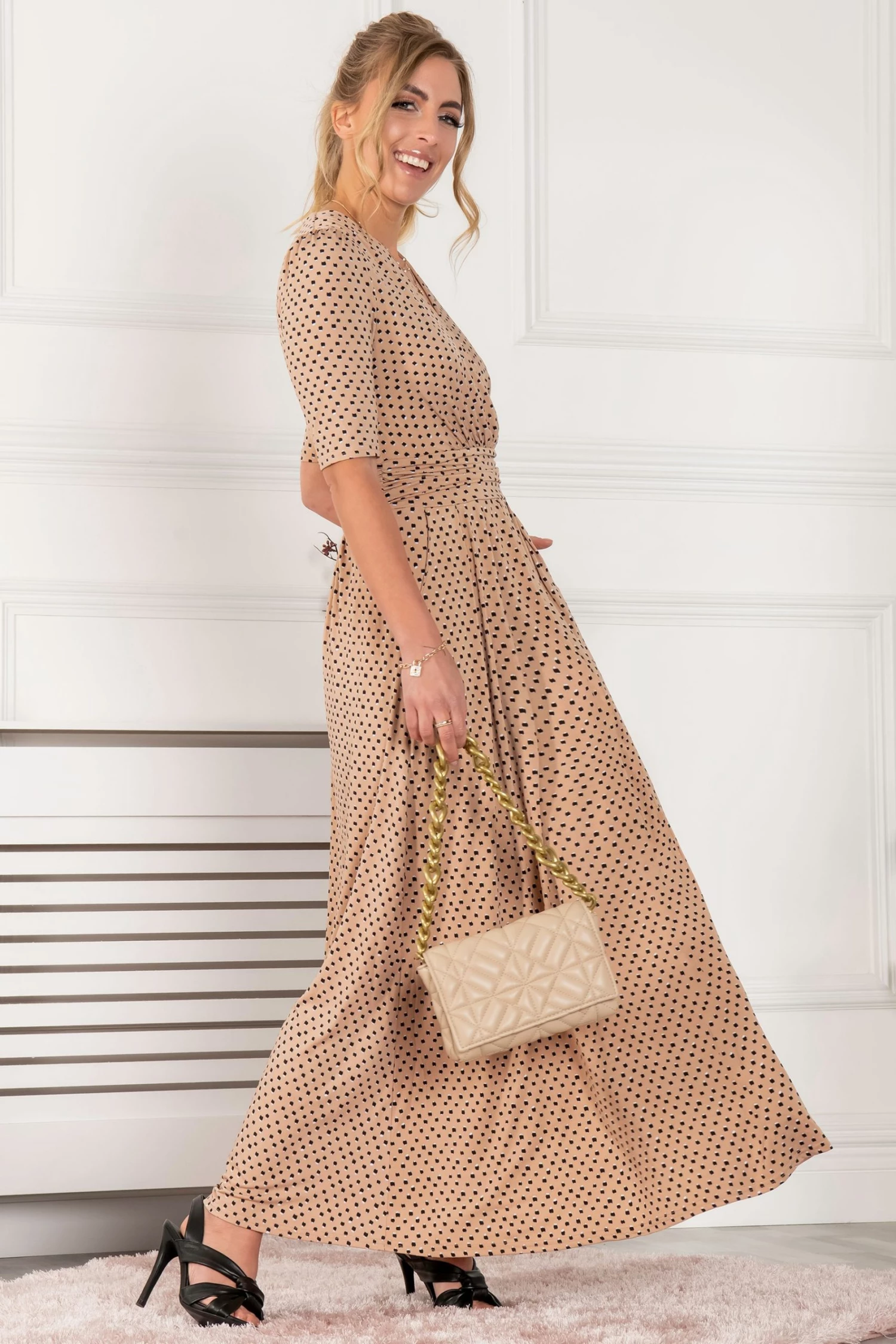Graceful from top to bottom, this dress from Jolie Moi features a simple but stylish spotted pattern which makes it truly distinctive. Versatile with its elegant wrap over V-neckline and short sleeves, it is completed with functional pockets and a ruched elasticated waistband which draws in your silhouette for a form-flattering fit.