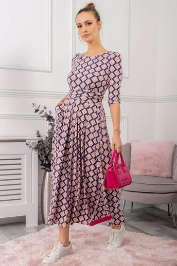 Flaring out at the hem for a feminine silhouette, this maxi dress by Jolie Moi adds impact with its eye-catching abstract pattern. Framed with a round neckline and three-quarter length sleeves, it is a care-free option for wherever the day takes you.