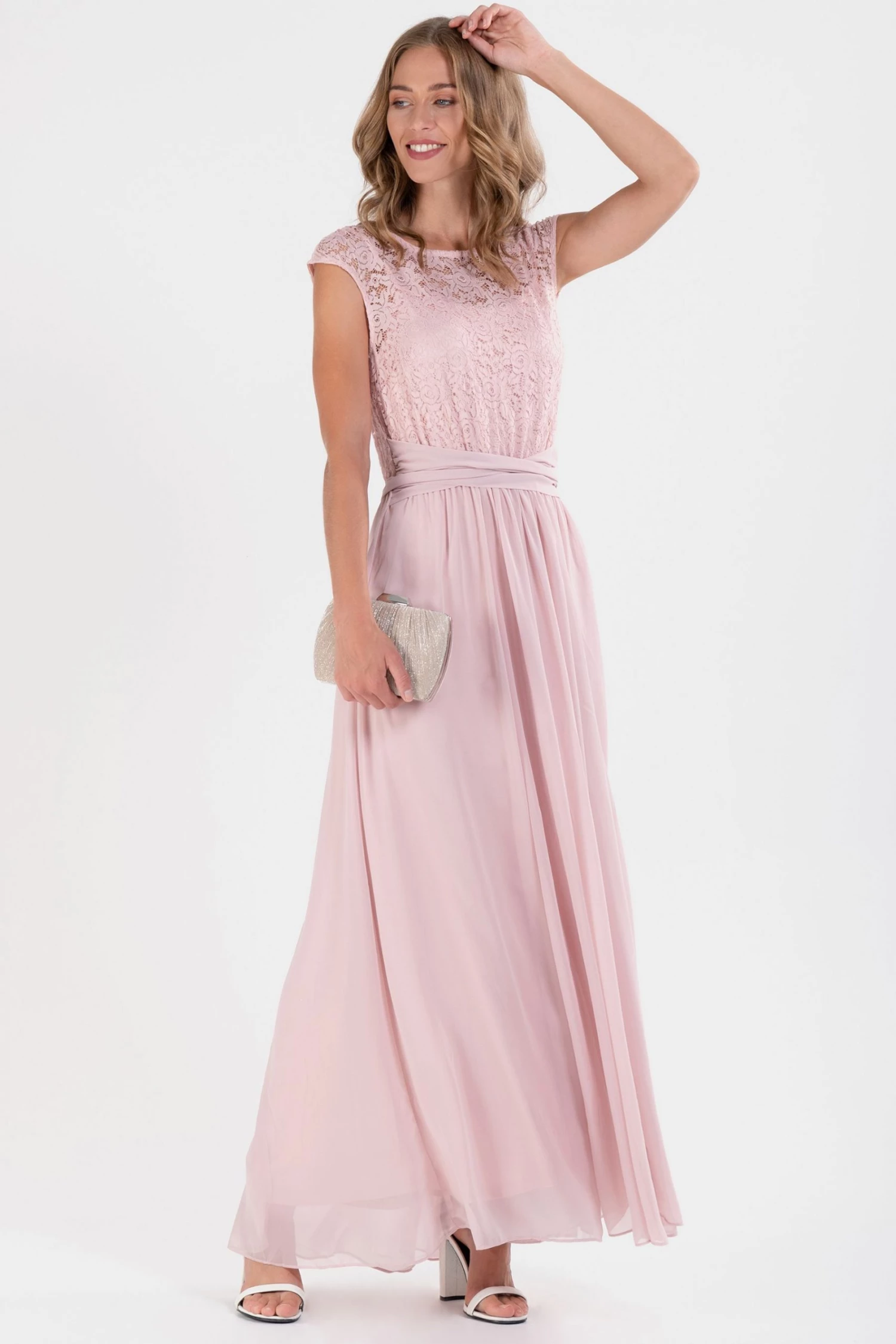 Opt for modern elegance at your next special occasion with this lace bodice flare dress from Jolie Moi. Crafted from soft stretchy lace with lightweight chiffon, this flared dress comes with a fitted cordonnet lace bodice and a flare below-the-knee skirt. Lined for optimum comfort, it is completed with a self-tie belt and an elasticated waist.