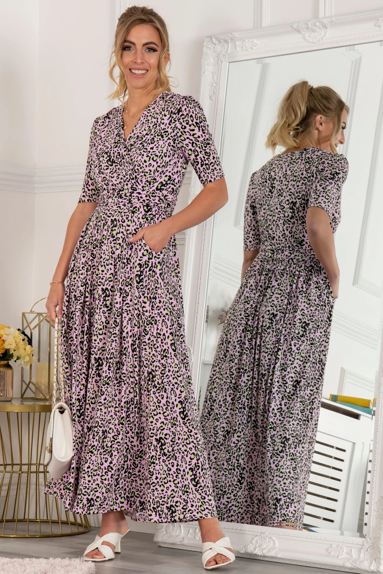 Graceful from top to bottom, this dress from Jolie Moi features a simple but striking animal print which makes it truly distinctive. Versatile with its elegant wrap over V-neckline and short sleeves, it is completed with functional pockets and a ruched elasticated waistband which draws in your silhouette for a form-flattering fit.
