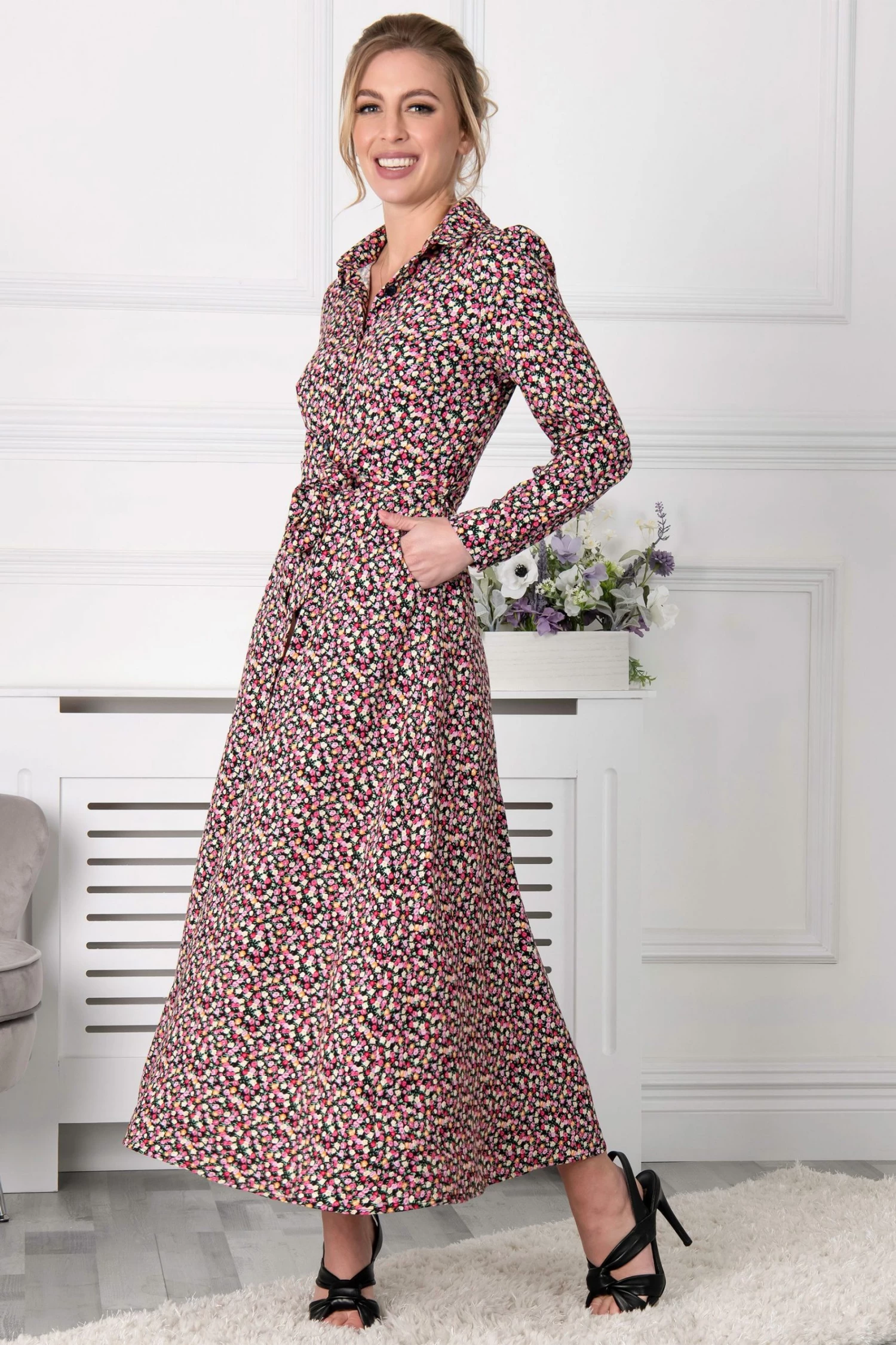 This easy to wear style by Jolie Moi comes in a breathable and kind-on-the-skin floral printed, viscose linen blend. Framed with a smart shirt collar and long sleeves, the dress has two side pockets for carrying essentials. Add boots and a cosy knit for colder days or pair with some trainers for summer days.
