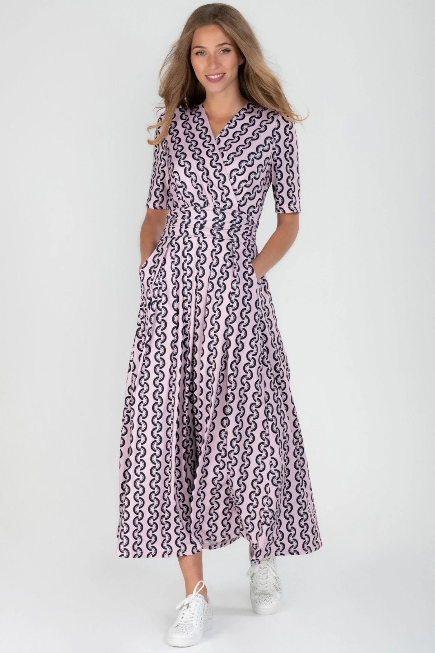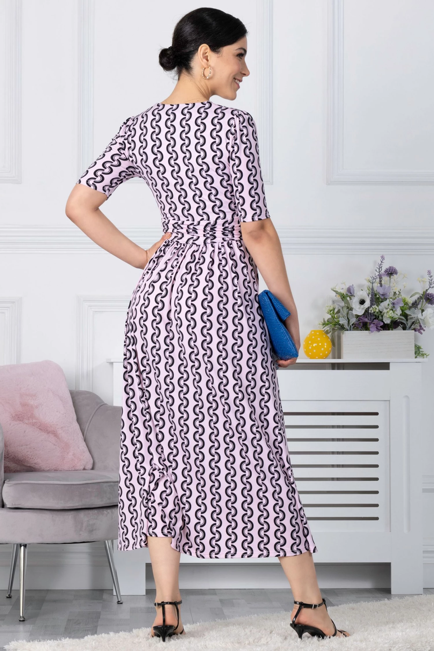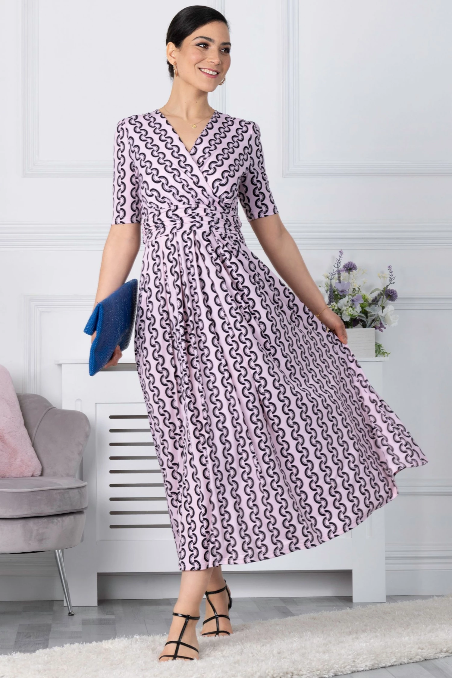 With a refined wrap front and flared hem, this maxi dress by Jolie Moi is brought to life with a floral print. Equipped with an elasticated waist to ensure a form-flattering silhouette, completed with a flattering V-neckline and short sleeves, it is made from a soft and fluid blended fabric and is a pretty piece you’ll reach for again and again.