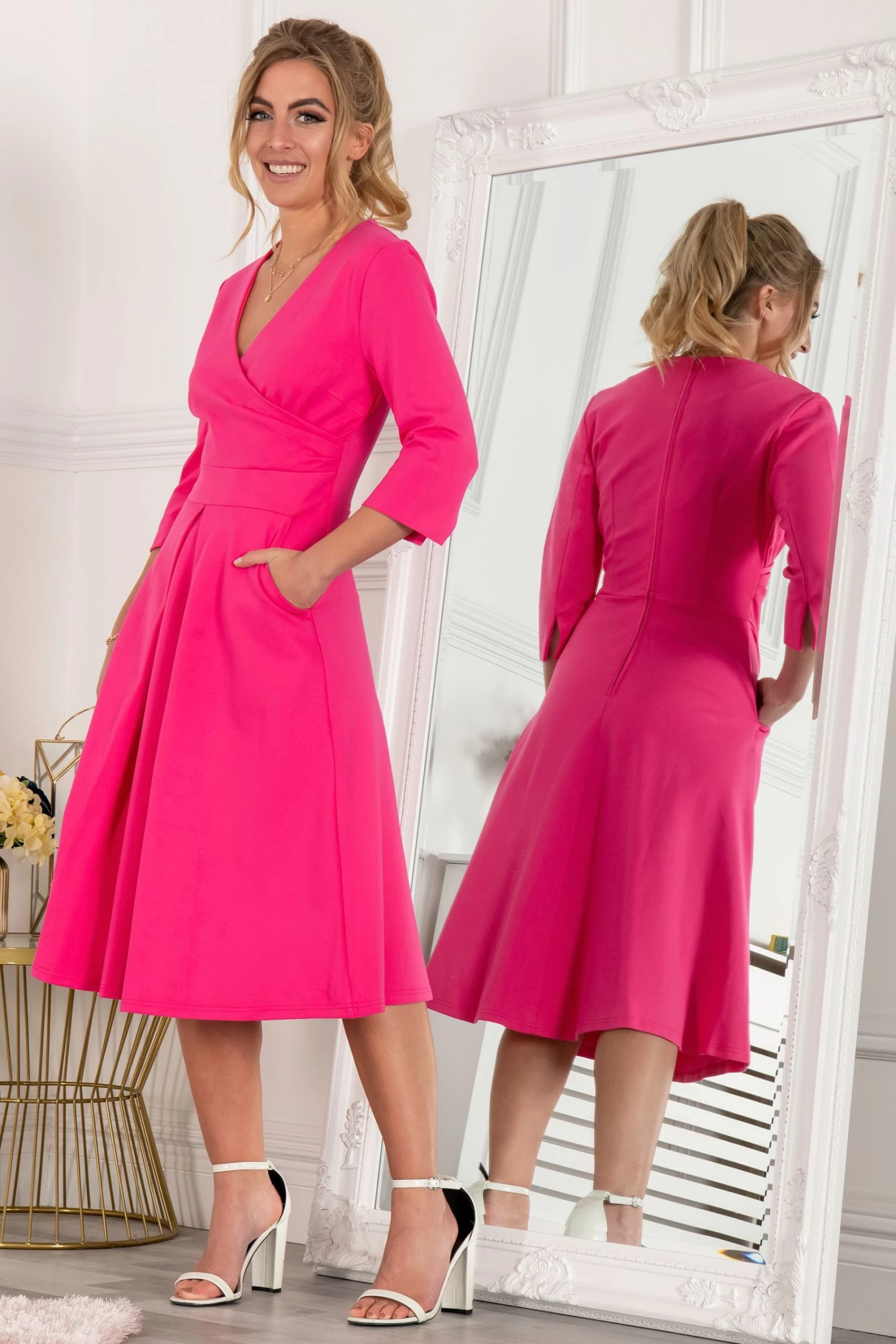 Flaring out at the hem for a 50’s aesthetic, the knee-length dress by Jolie Moi is free from any fussy details. Topped with a wrapped V-neck design and quarter length sleeves, this dress will take you from day to evening in style.