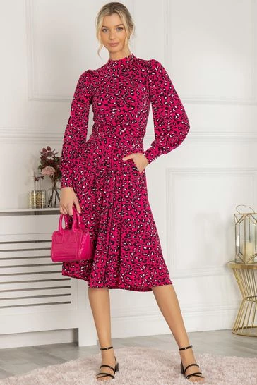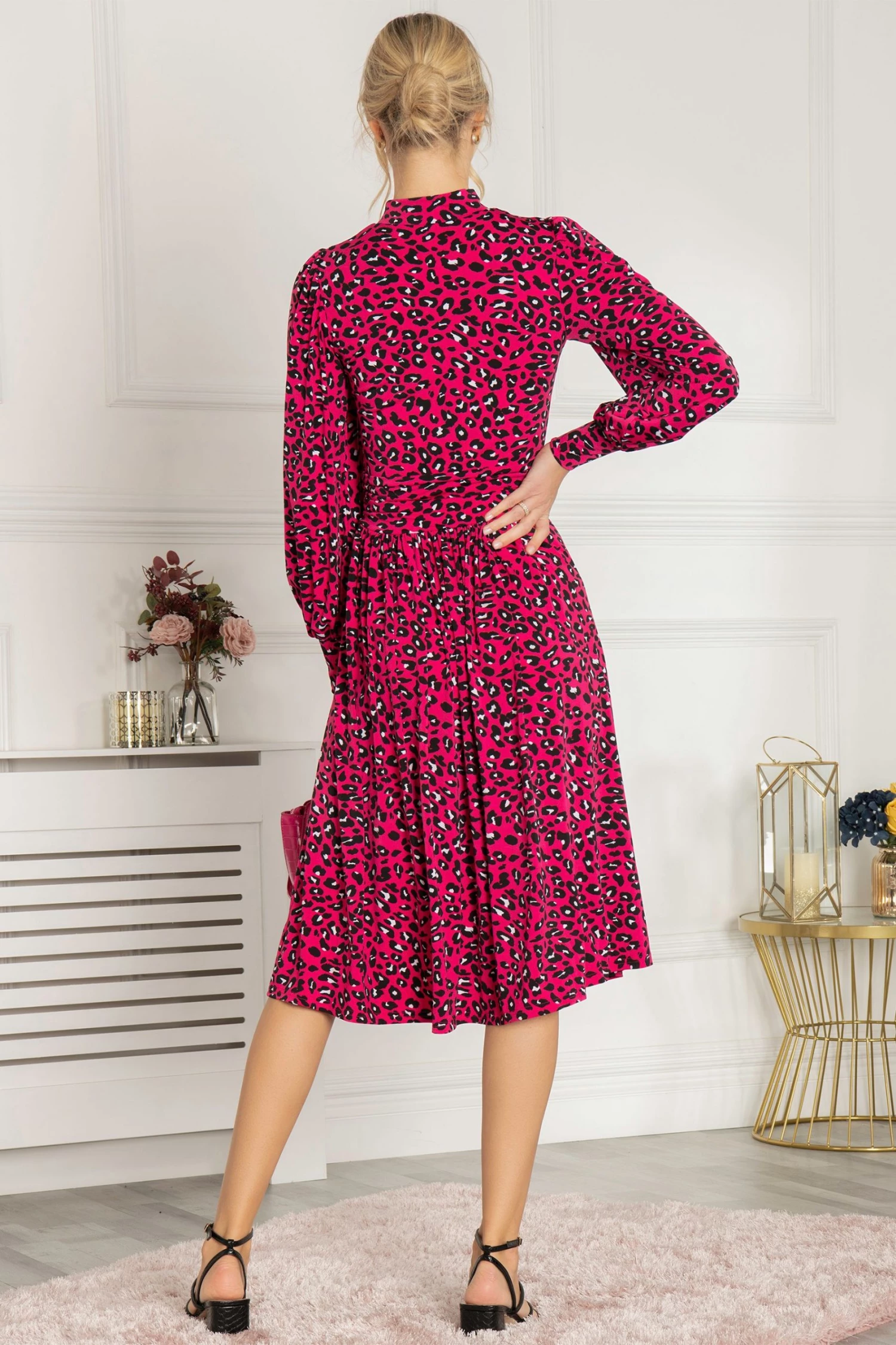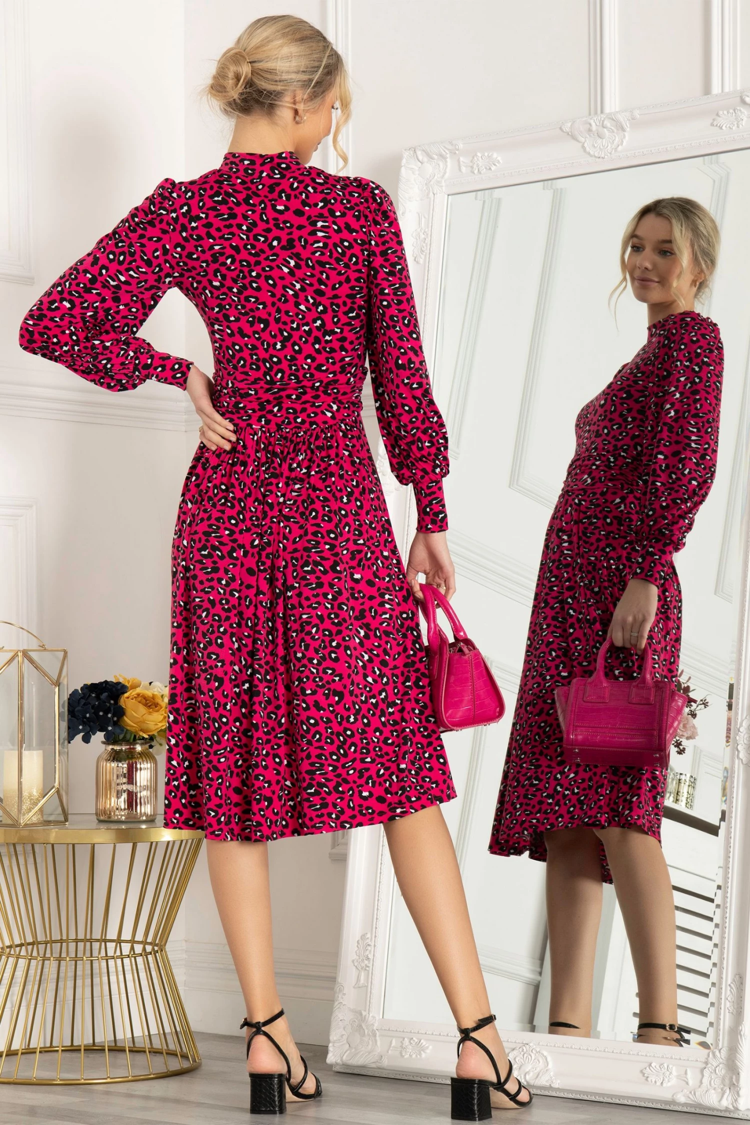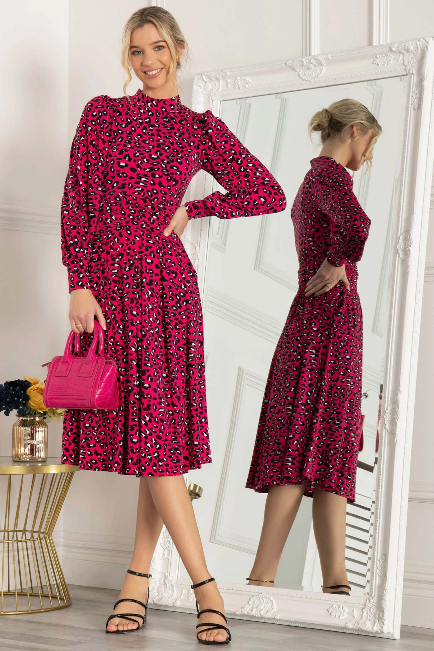 Made from premium jersey fabric for all-day comfort, this midi dress gracefully drapes the figure and features long sleeves, pockets and an exciting animal print pattern. The dress is designed with a high funnel neckline that lengthens the look. Perfect for any outdoor occasion which we are sure you will want to wear time and time again.