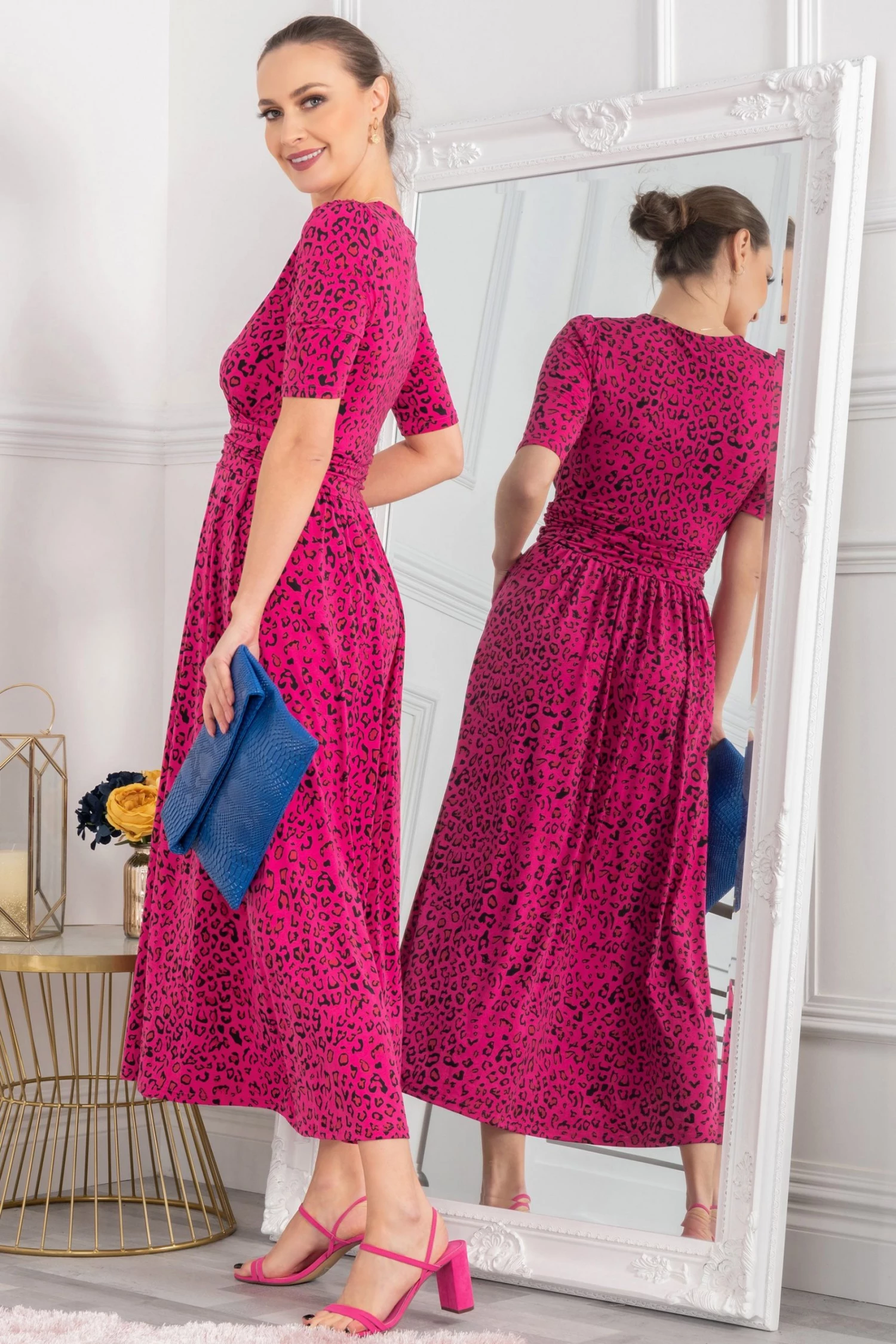 Fashioned from a lightweight mesh, the ruched detail around the waist adds a beautiful finishing touch. The body of this Jolie Moi dress is fully lined with sheer ruffle cap sleeves. Flaring out at the hem for added movement, it is a perfect dress that makes an ideal choice for a guest at wedding.