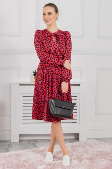 Nodding to vintage silhouettes in a pretty tea style, this midi dress by Jolie Moi will have you covered all hours of the day; boardroom and bar alike. Defined with a smart bow collar and puff long sleeves, it is made from a soft and fluid blended fabric and is a pretty piece you’ll reach for again and again.