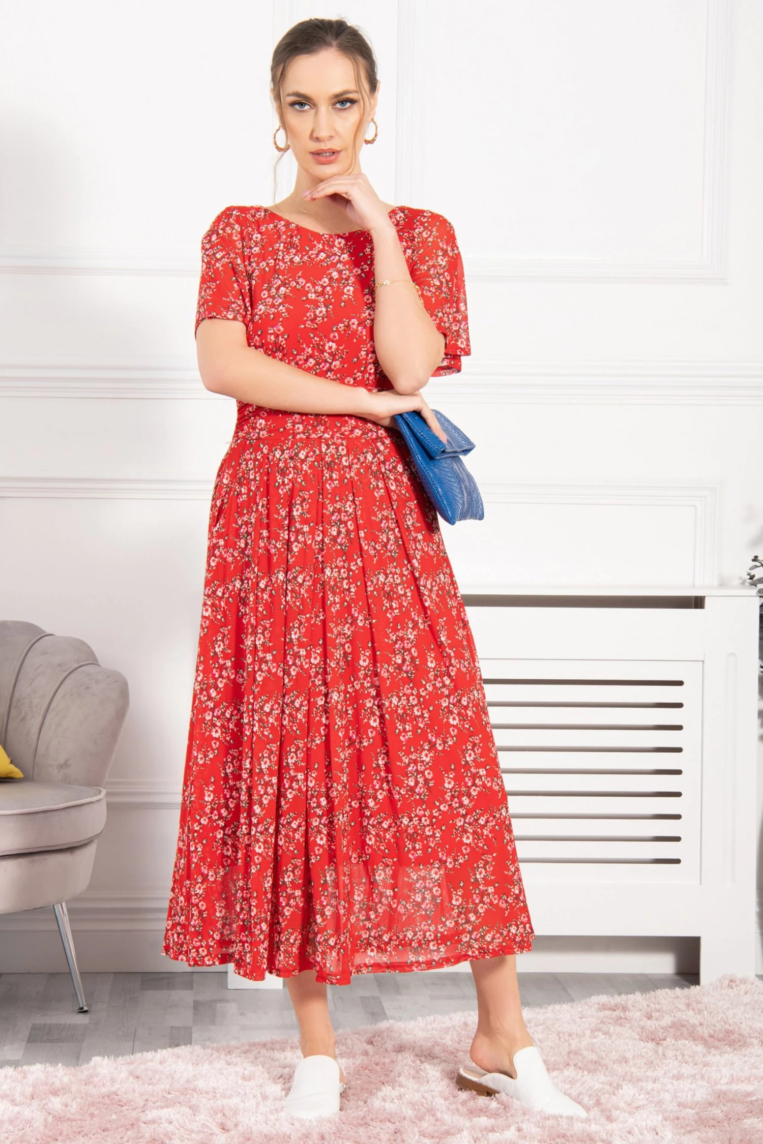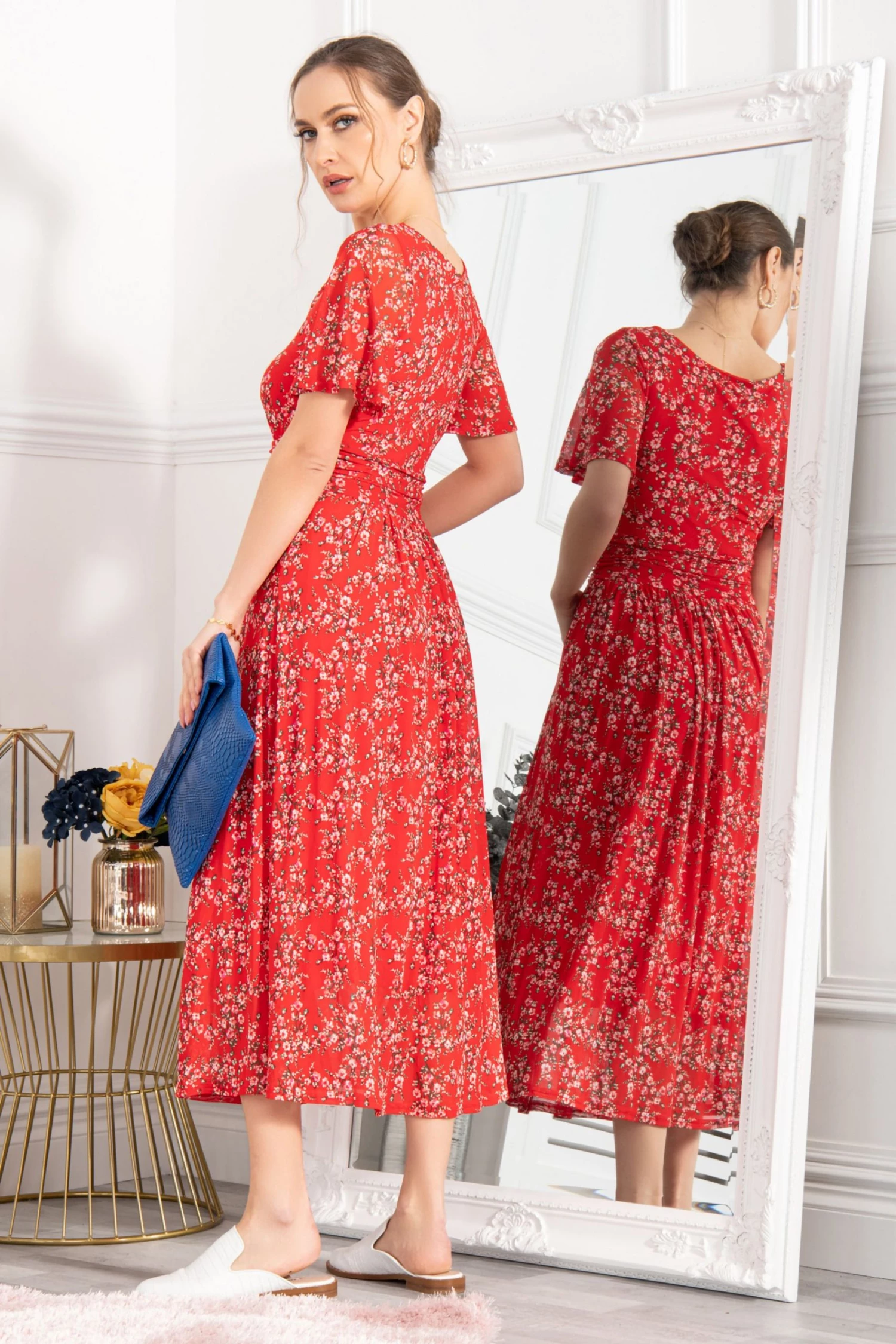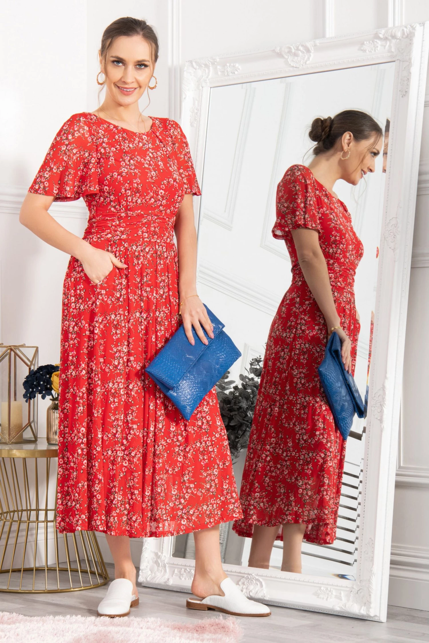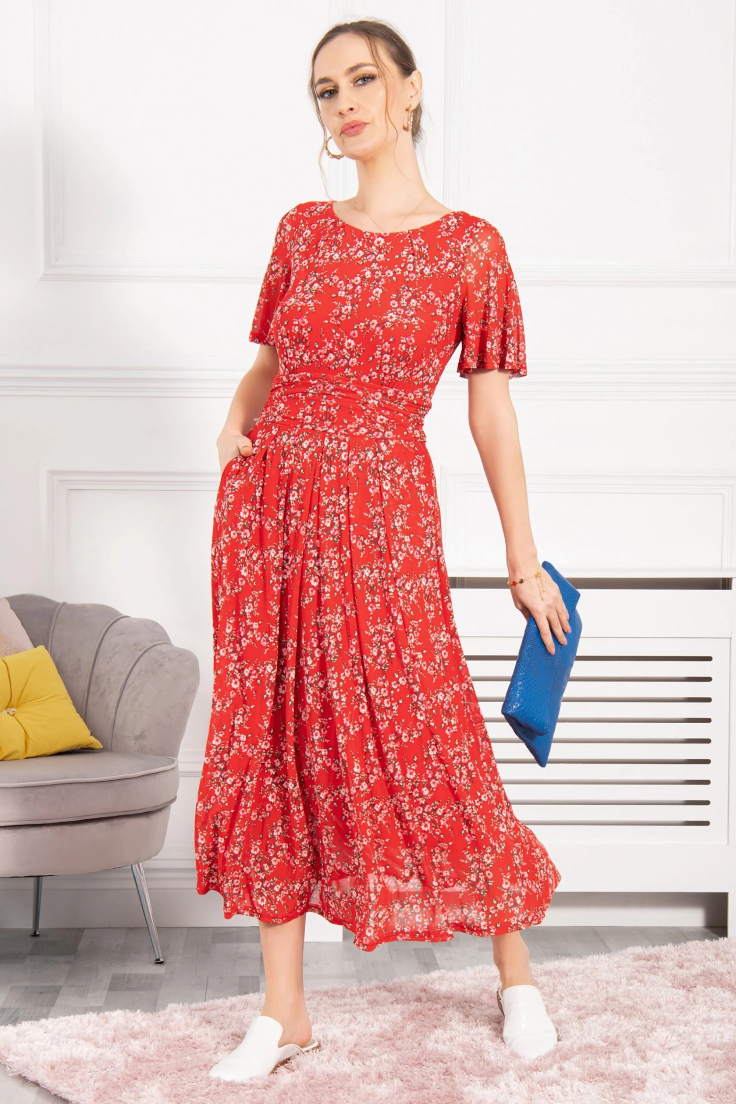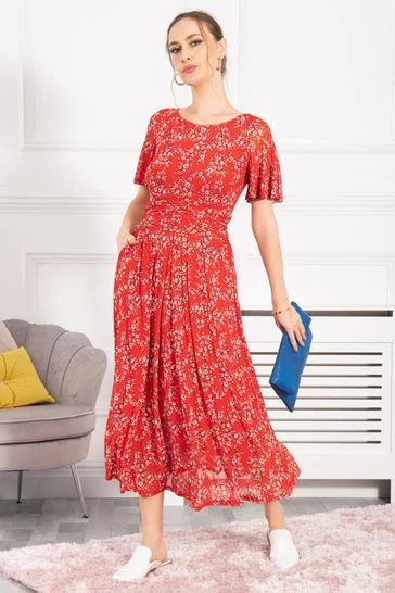 Flaring out at the hem for added movement, this mesh dress by Jolie Moi boasts a pretty floral flourish for added appeal. Framed with a round neckline, flared elbow length sleeves and finished with two side pockets and fully lined for the most comfort, it is ready for whatever fills your diary this summer.