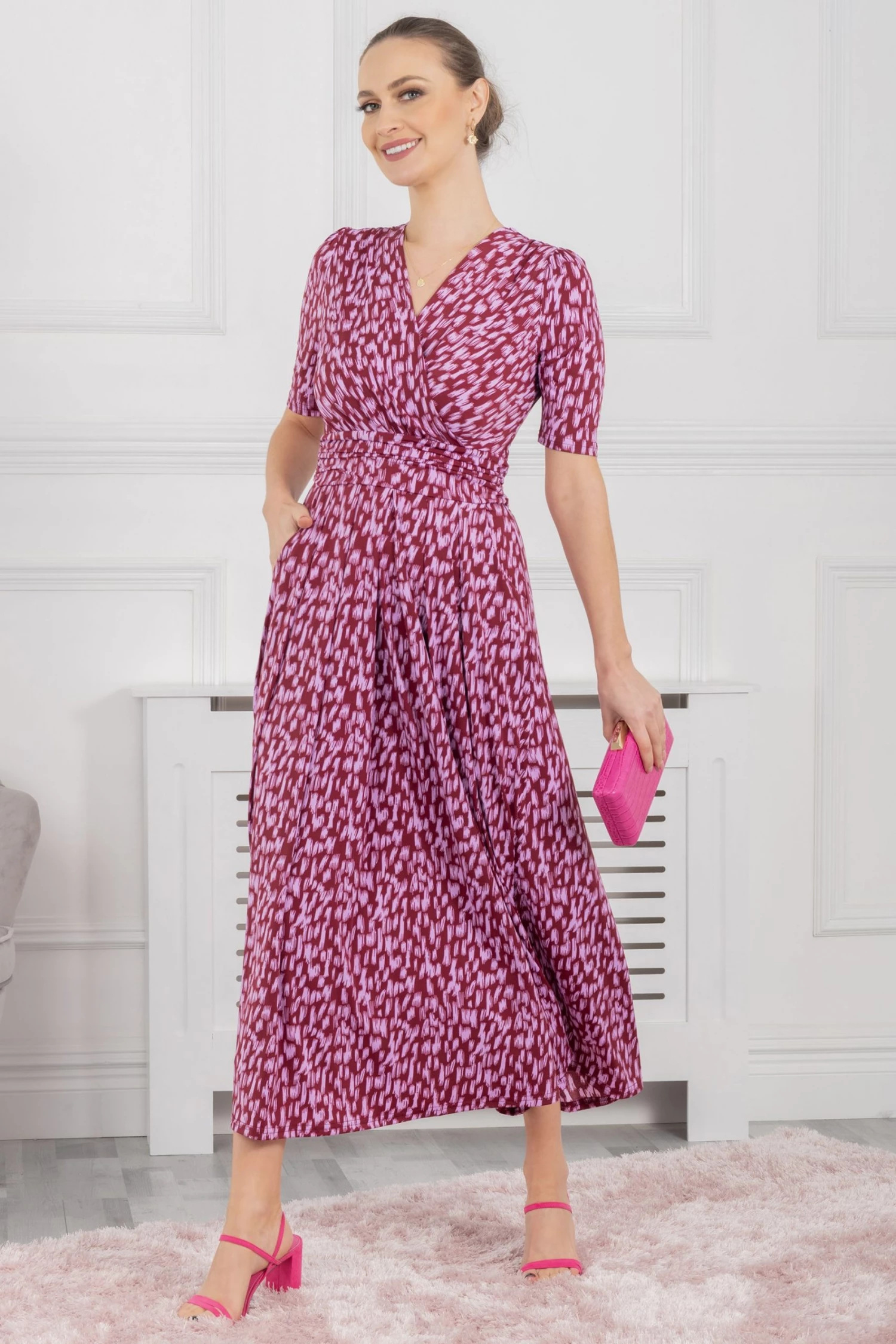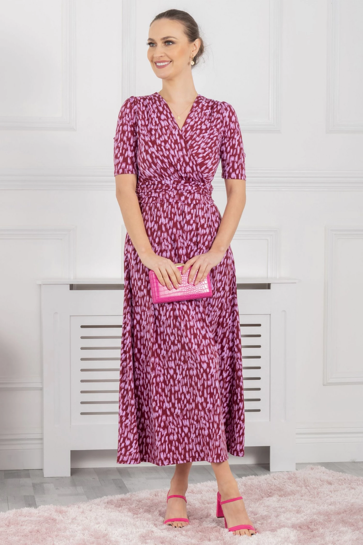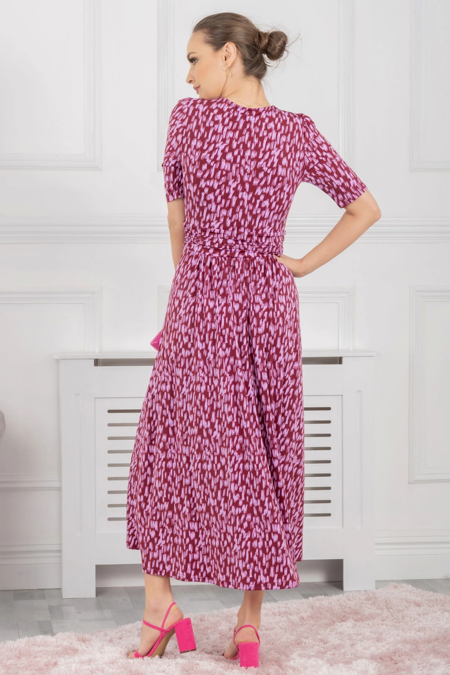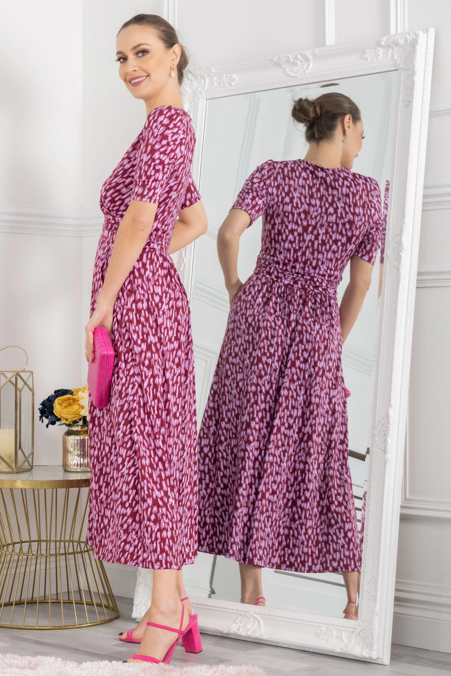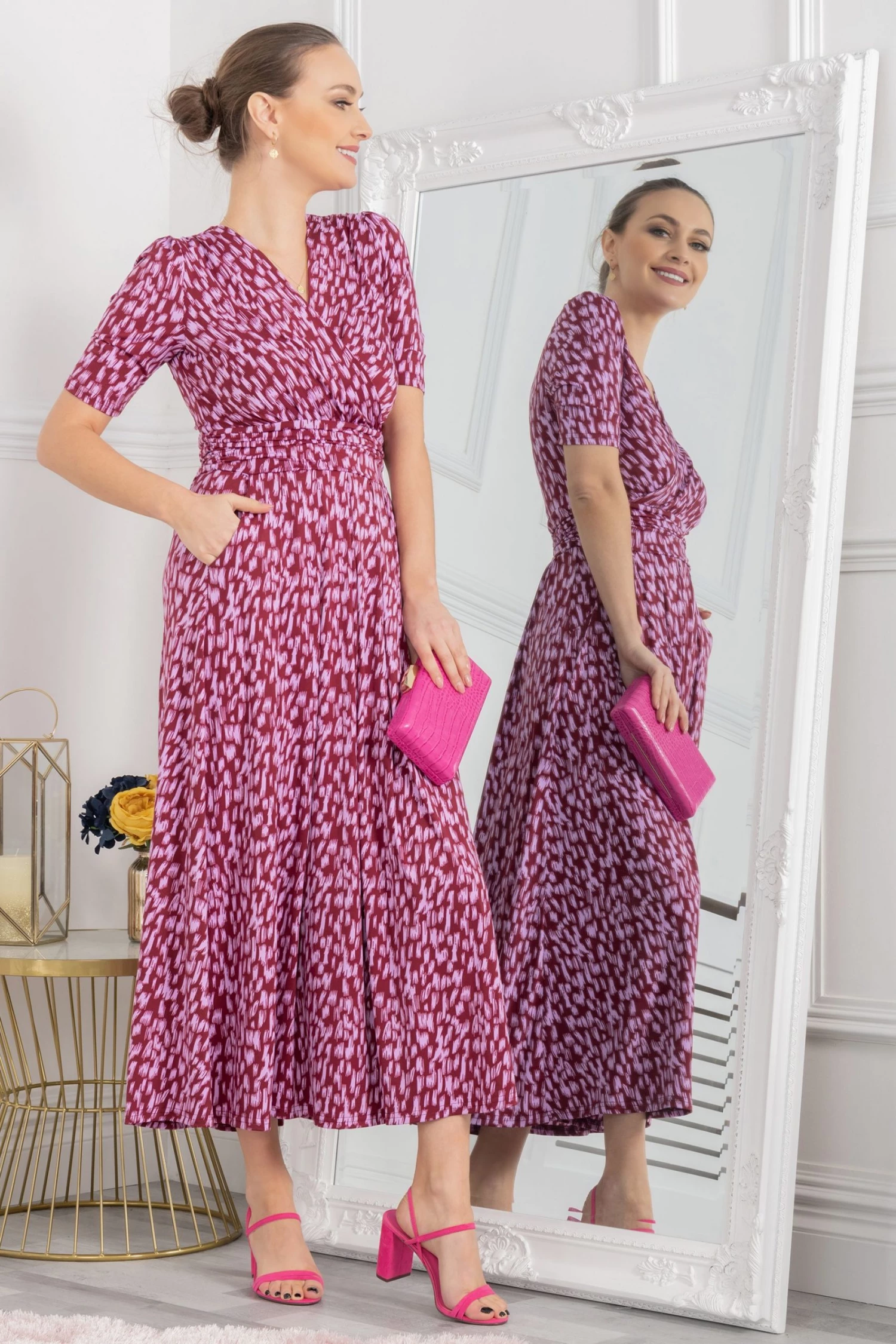 With a refined wrap front and flared hem, this maxi dress by Jolie Moi is brought to life with an abstract print. Equipped with an elasticated waist to ensure a form-flattering silhouette, completed with a flattering V-neckline and short sleeves, it is made from a soft and fluid blended fabric and is a pretty piece you’ll reach for again and again.