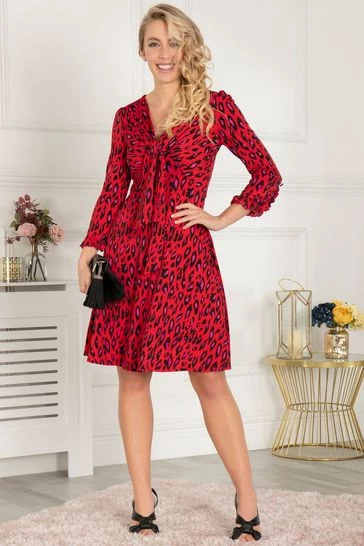 Made from a comfortable blend, with a hint of stretch for comfort, this leopard print dress from Jolie Moi will lift your weekend wardrobe. With elegant ruffles to the sleeves tie detail to the V-neckline, and simply add heels for an effortless look that can be dressed up or down.
