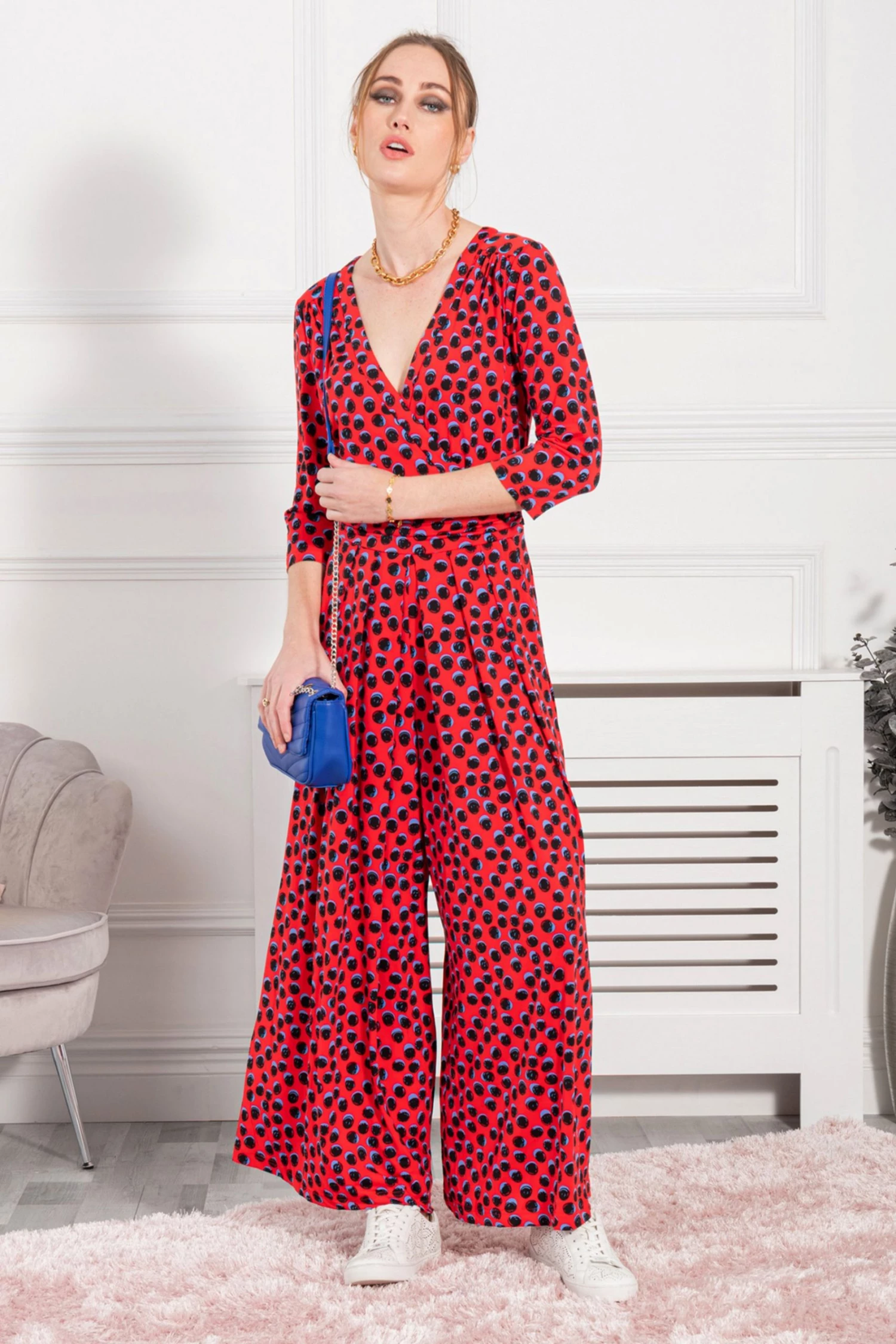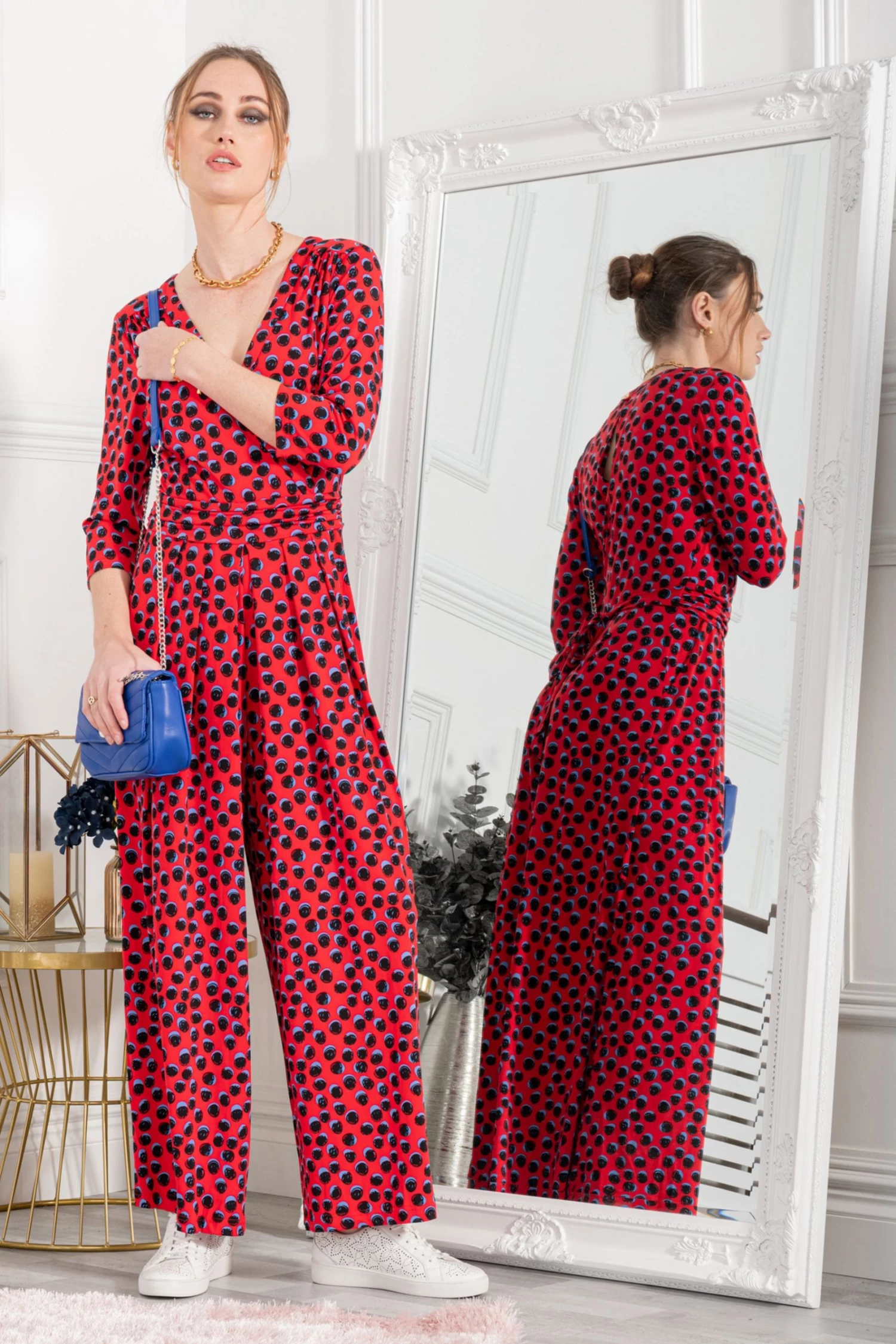 With a wrap front, nipped-in waist and wide legs, this jumpsuit from Jolie Moi is cut to flatter. Swathed in abstract prints for a take-notice touch and finished with side pockets and pull on fastening for easy wear, this piece is versatile enough to be styled differently and worn repeatedly.